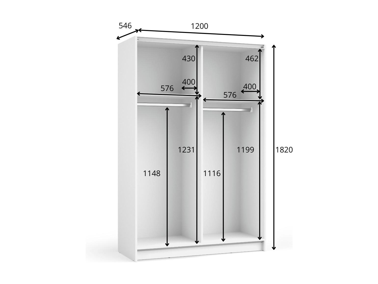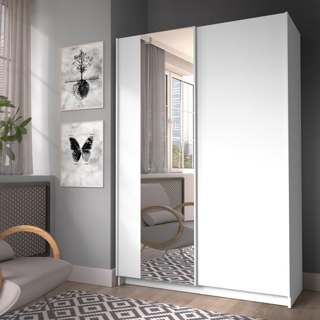 Armoire LYSIA 2 portes coulissantes avec miroir – 120 x 182 x 55 cm – Coloris blanc