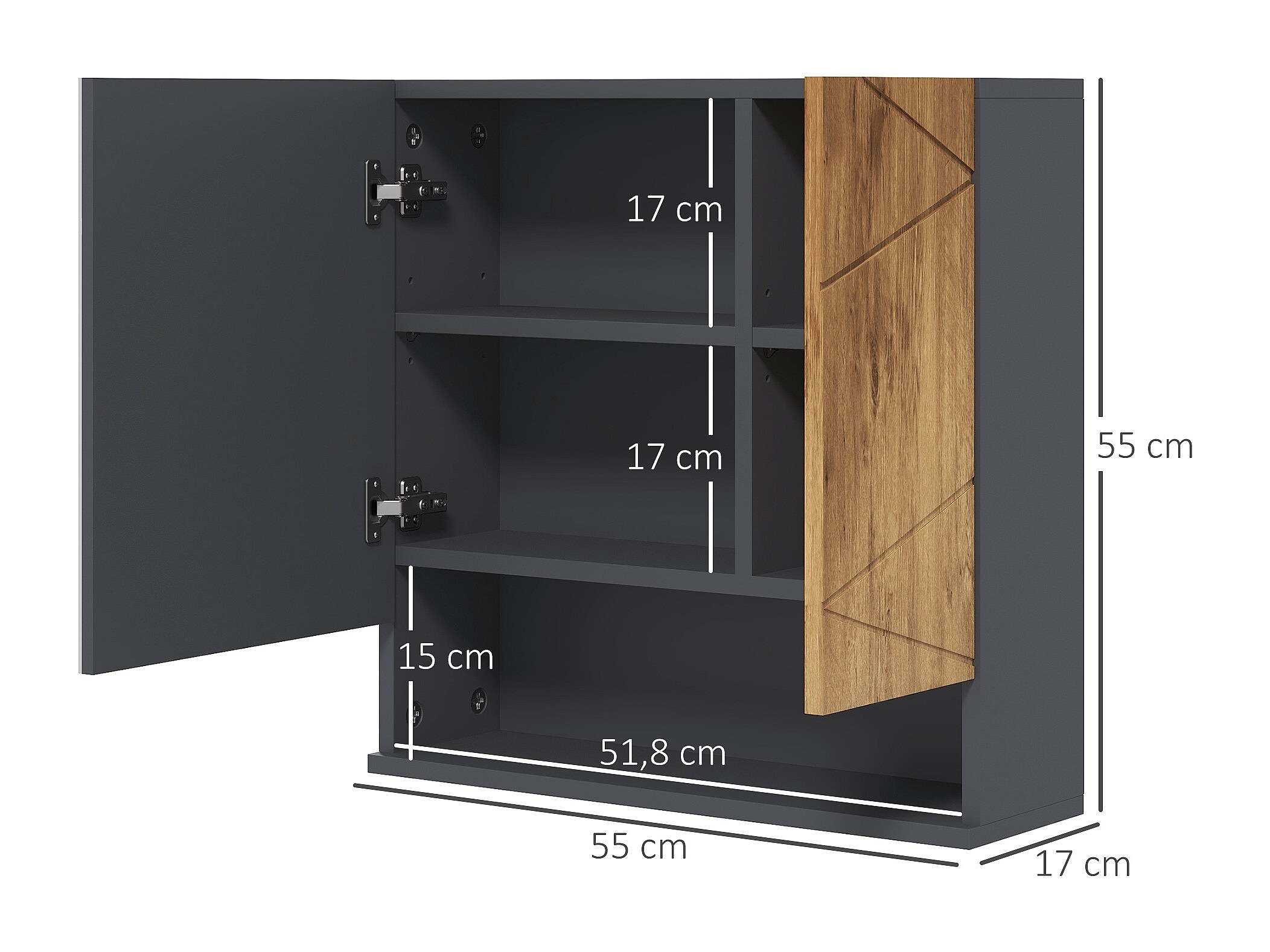 Armoire miroir de salle de bain - 2 portes, 2 étagères, niche - anthracite aspect bois