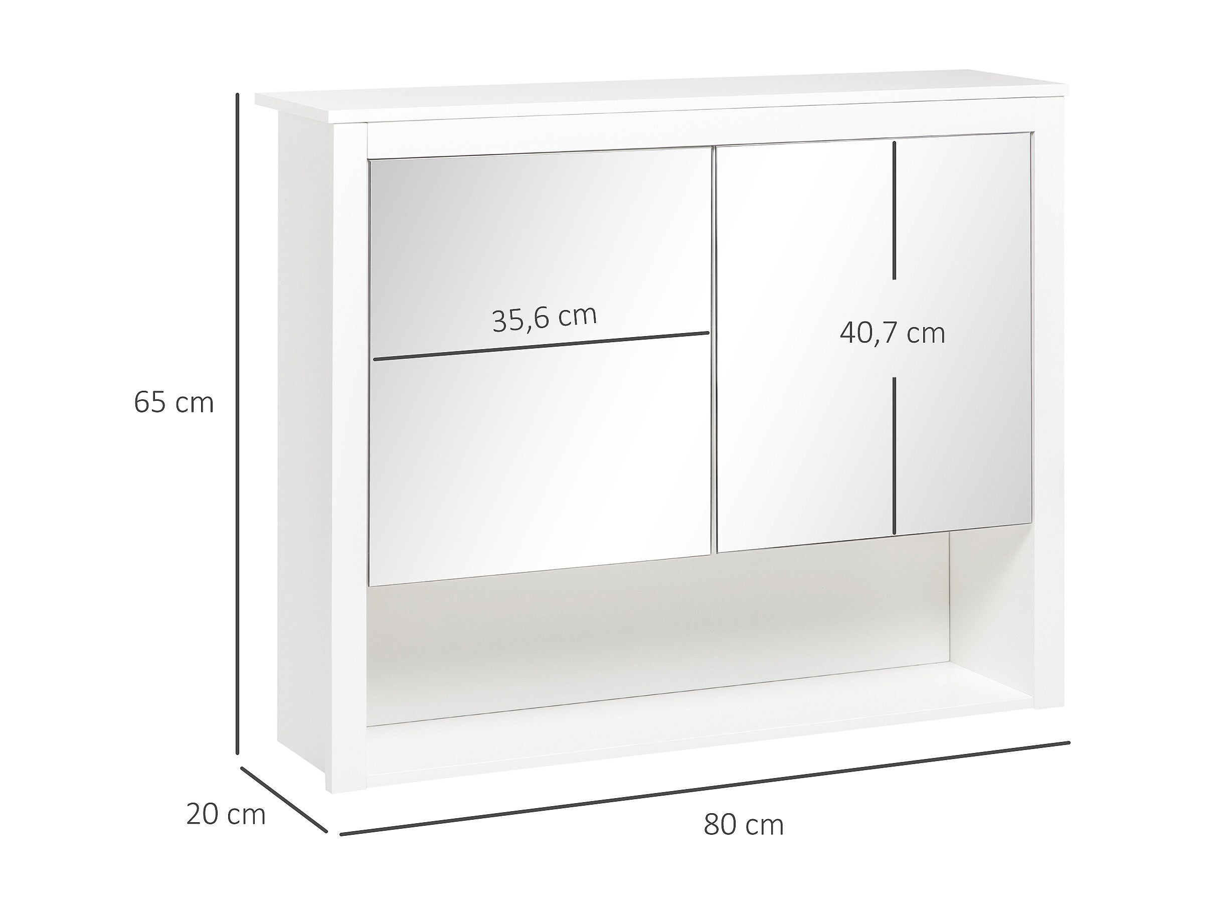Armoire murale miroir salle de bain 2 étagères dim. 48L x 14l x 45H cm panneaux particules MDF blanc