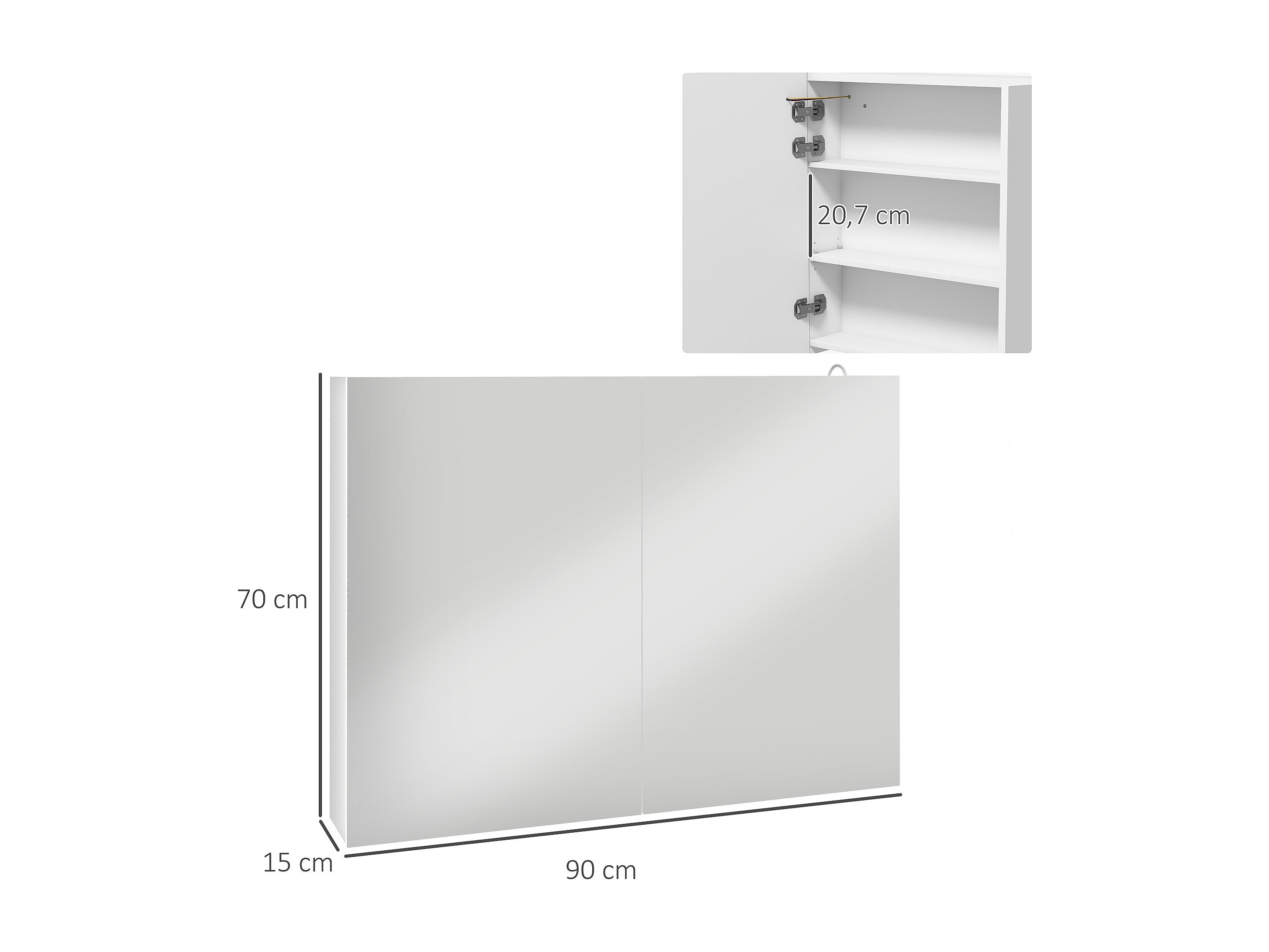 Armoire miroir de salle de bain armoire murale double portes et étagères dim. 60L x 15l x 60H cm MDF blanc
