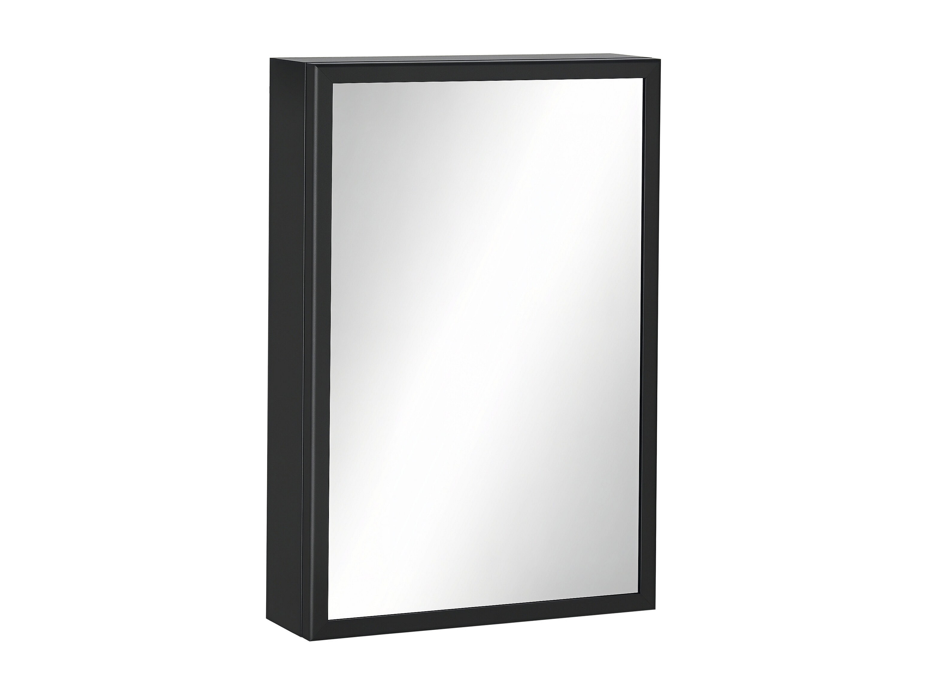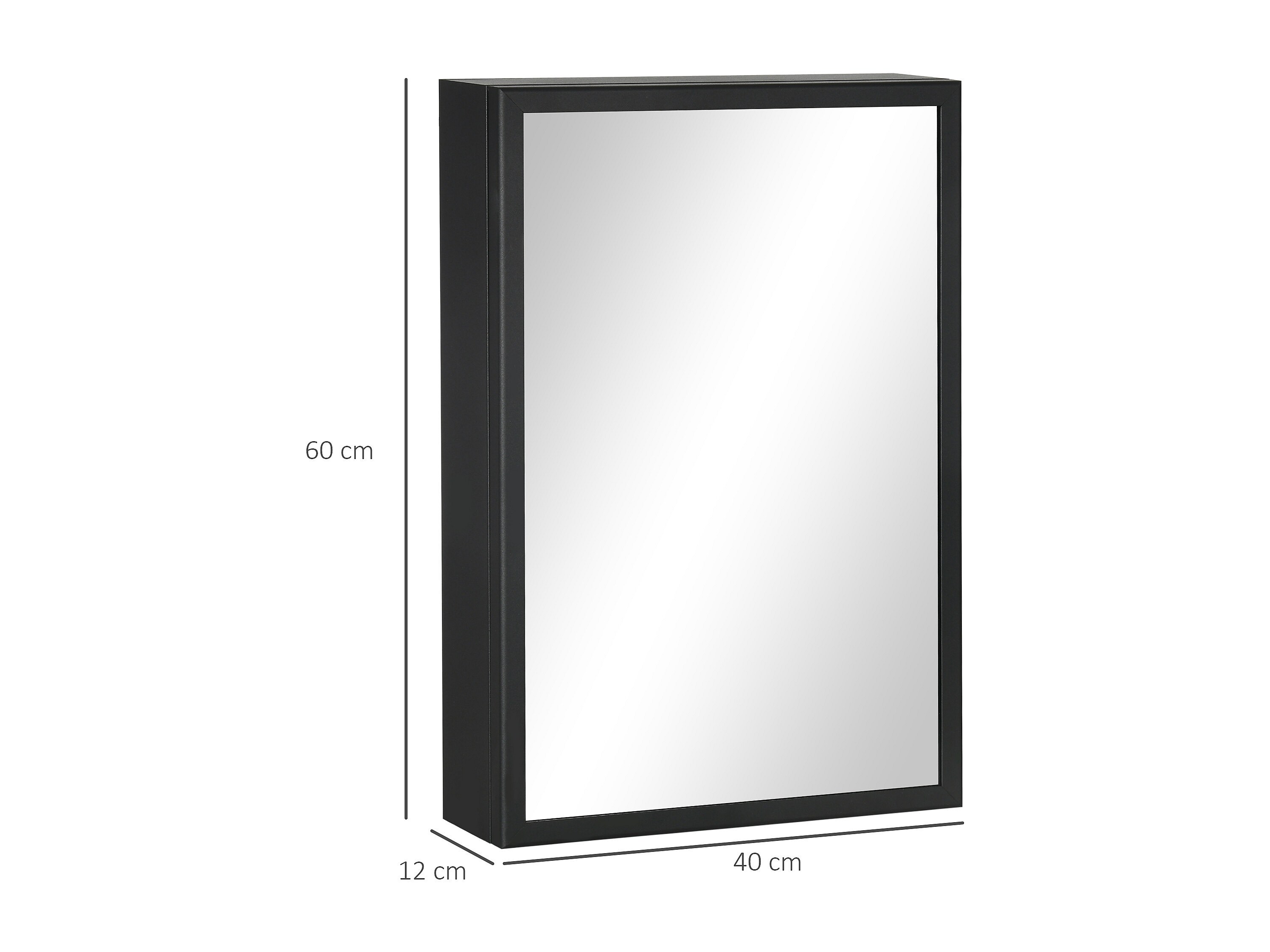 Armoire murale avec miroir, 3 étagères, acier noir, design moderne (40x15x60cm)