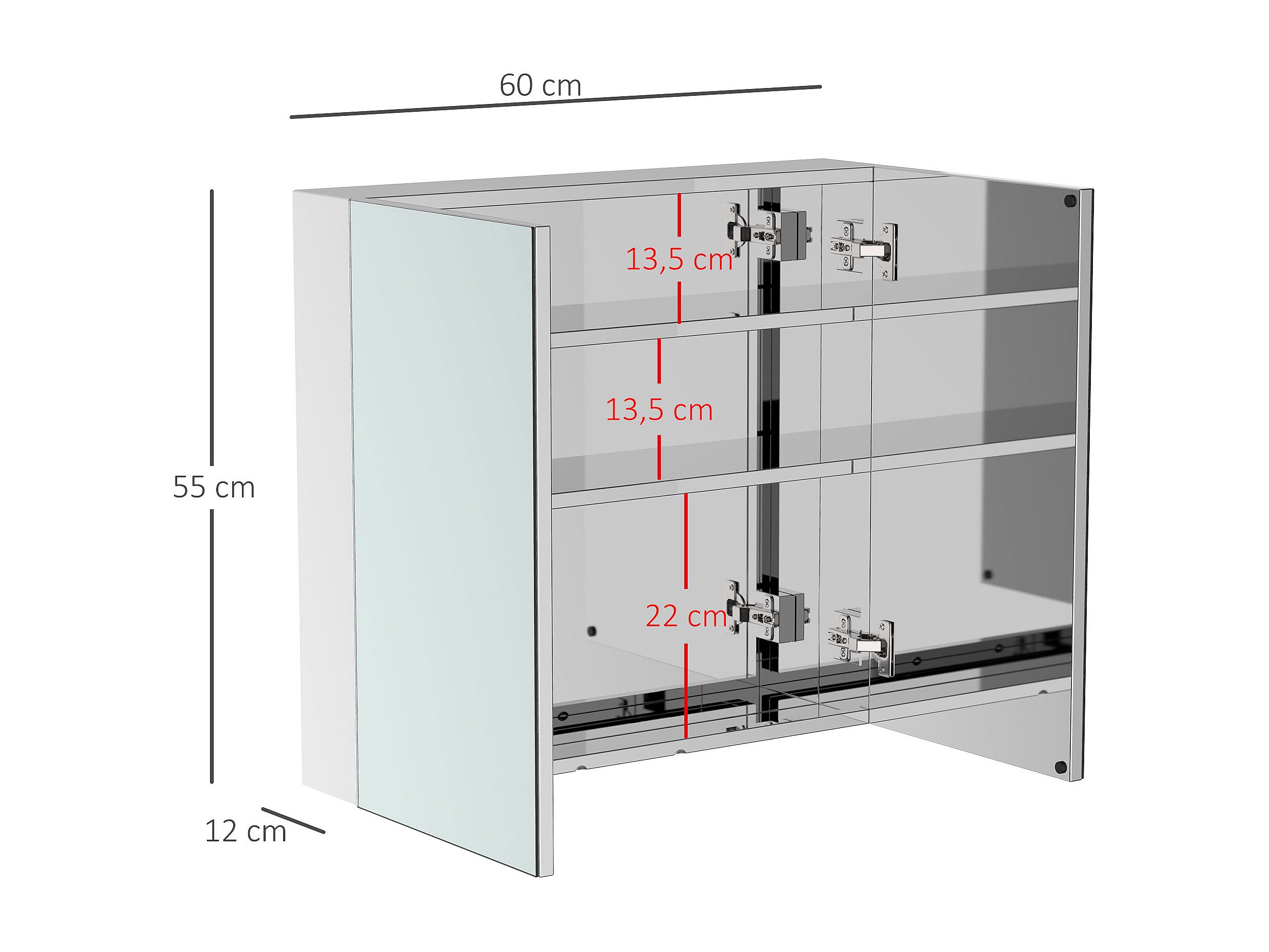 Armoire miroir rangement toilette salle de bain meuble mural dim. 60L x 12l x 55H cm acier inox.