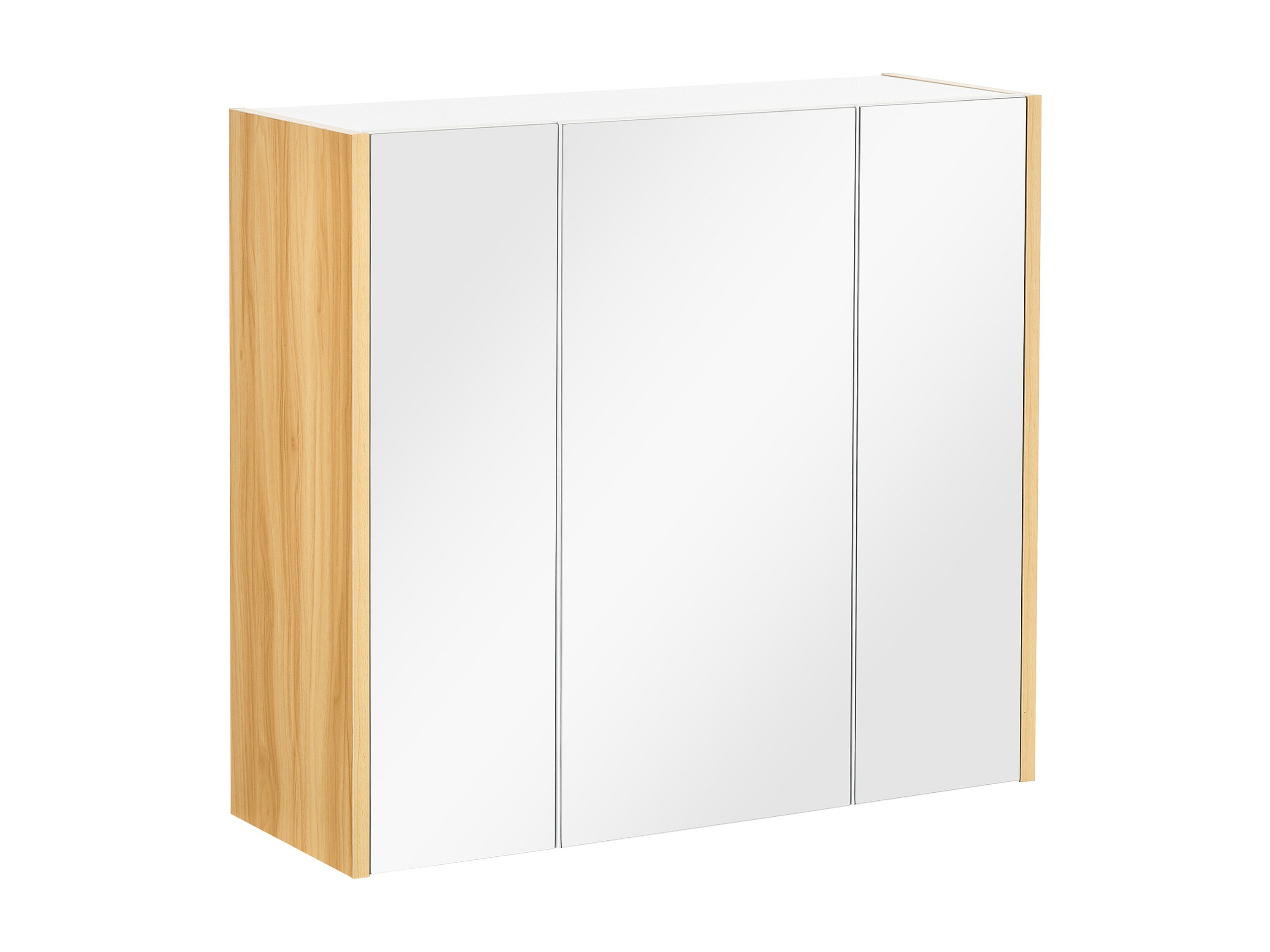 Armoire miroir salle de bain 3 portes 4 étagères aspect bois clair blanc