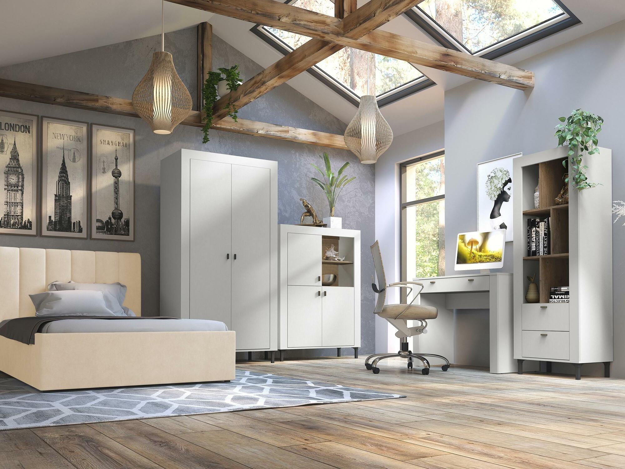 Armoire Mormavu 100, Chêne|Mat blanc, 194x97x56cm, Portes d'armoire: Avec des charnières