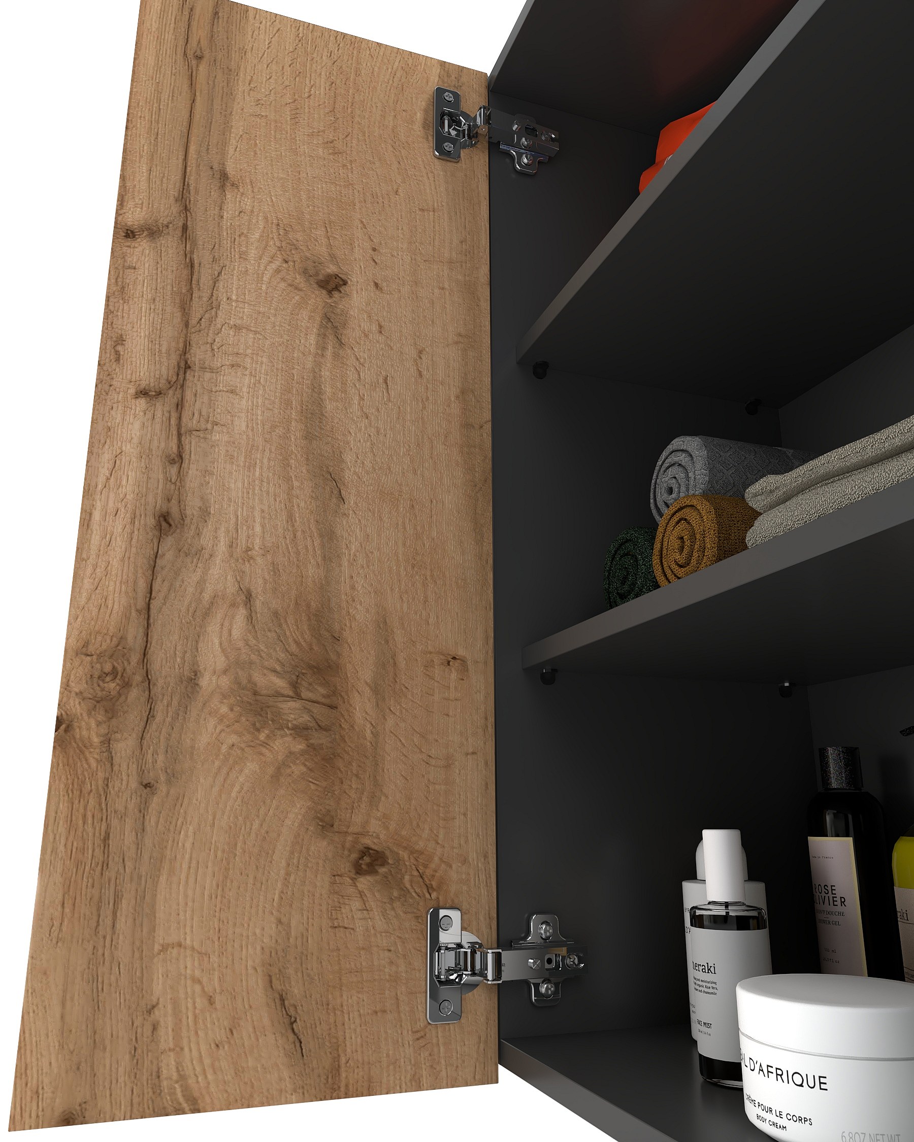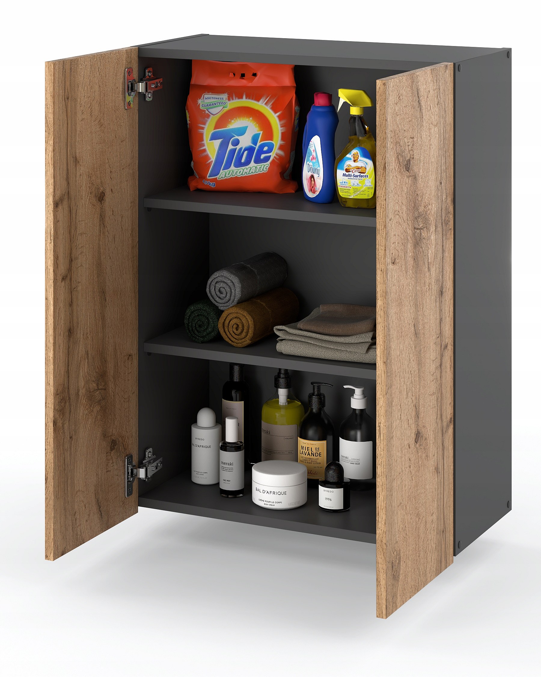 Armoire murale Chêne Wotan+GRIS 60 cm – Meuble haut et colonne pour salle de bain