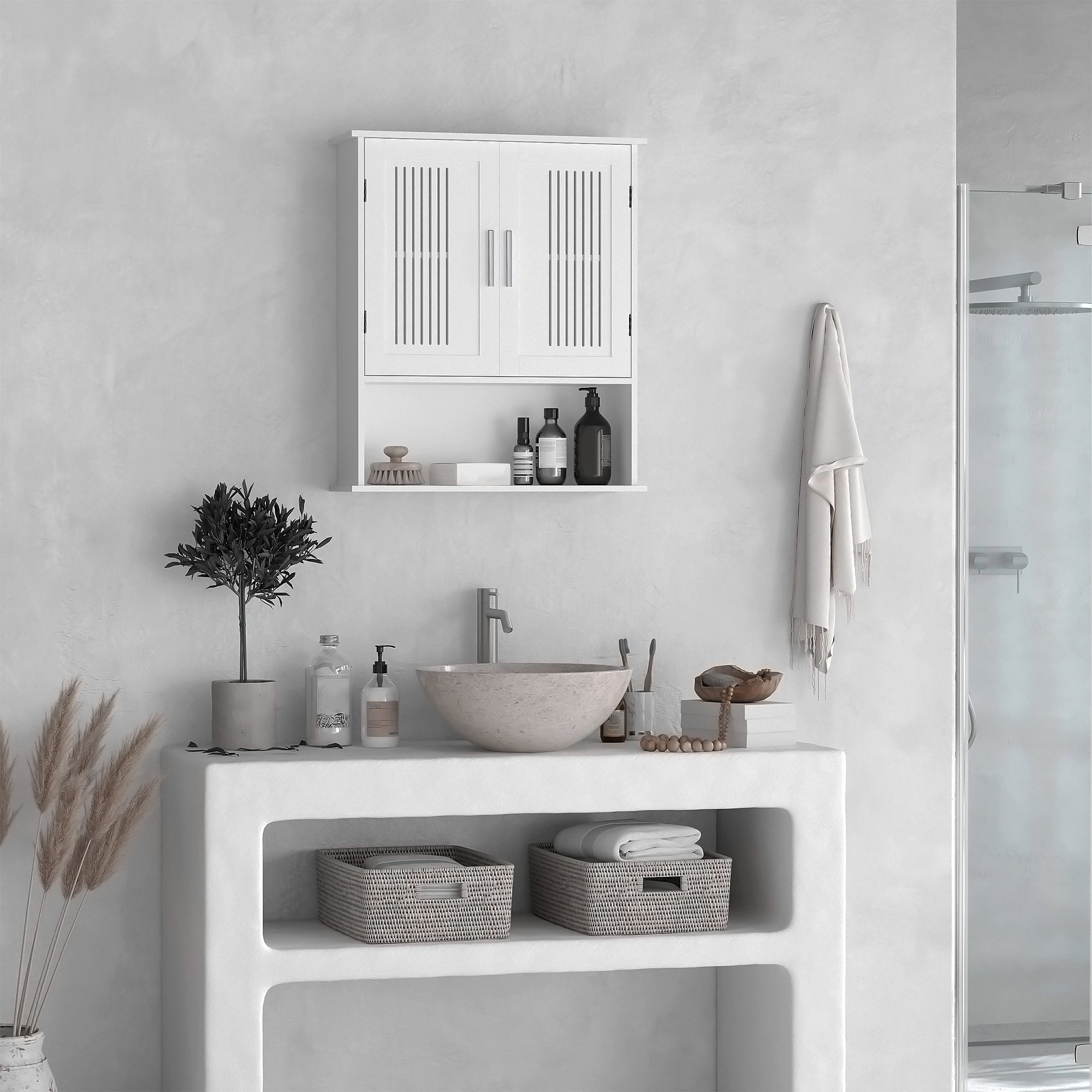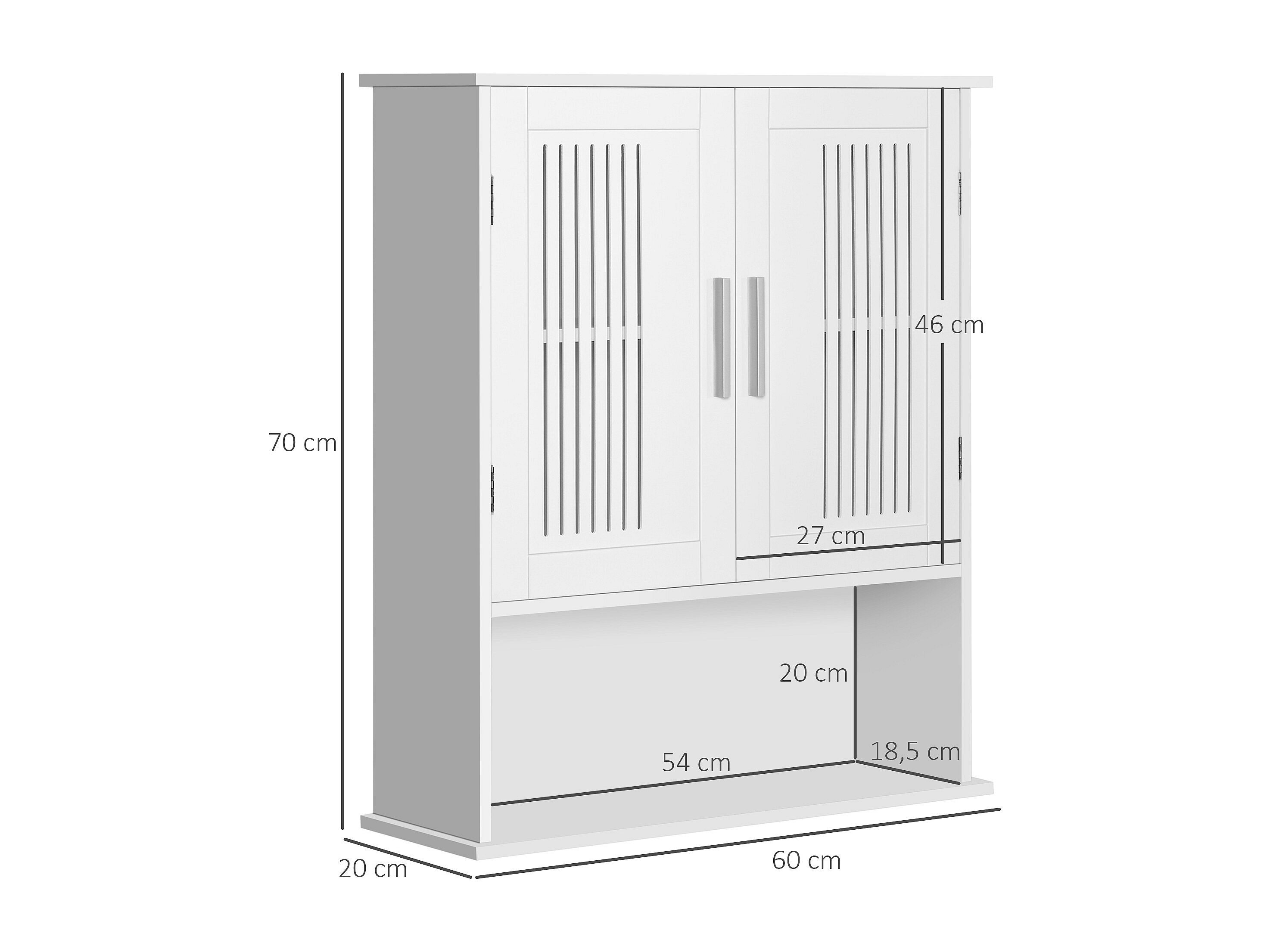 Armoire murale de salle de bain 2 portes - étagère, niche - dim. 60 x 20 x 70 cm - blanc