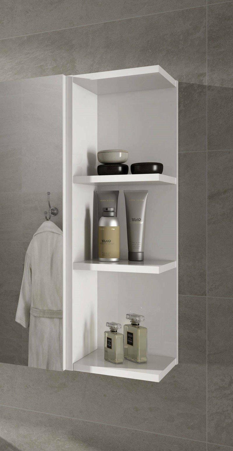 Armoire murale Torrance, Armoire colonne de salle de bain avec 1 porte, Armoire murale suspendue avec 1 étagère, 30x25h85 cm, Blanc brillant
