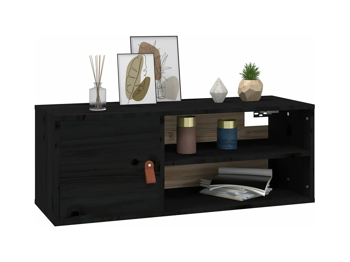 Armoire murale Noir 80x30x30 cm Bois de pin massif