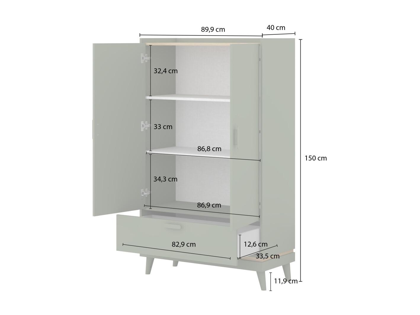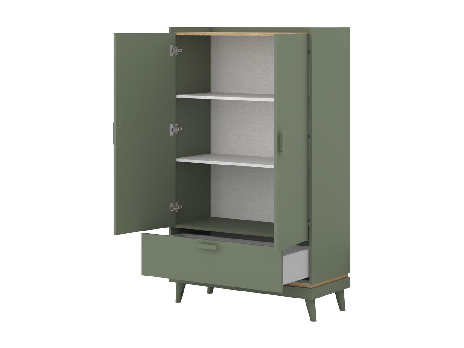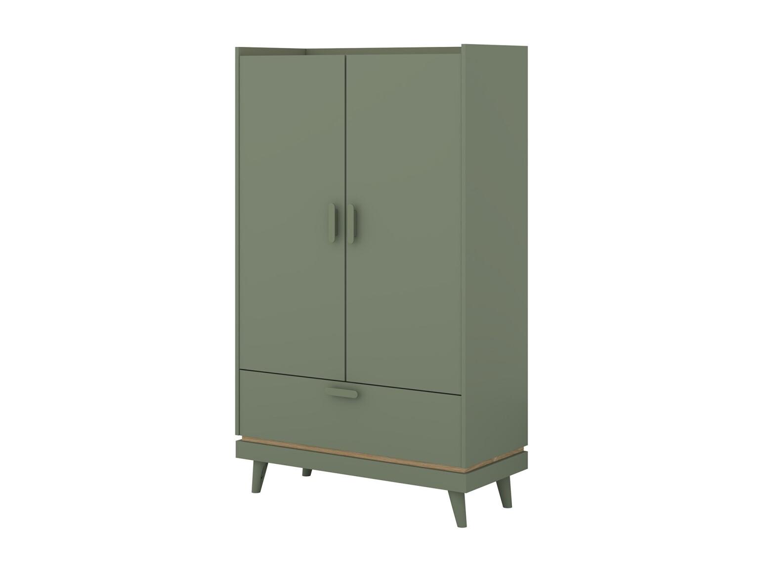 Armoire NOKI – 2 portes + 1 tiroir vert et bois – Petite armoire style scandinave