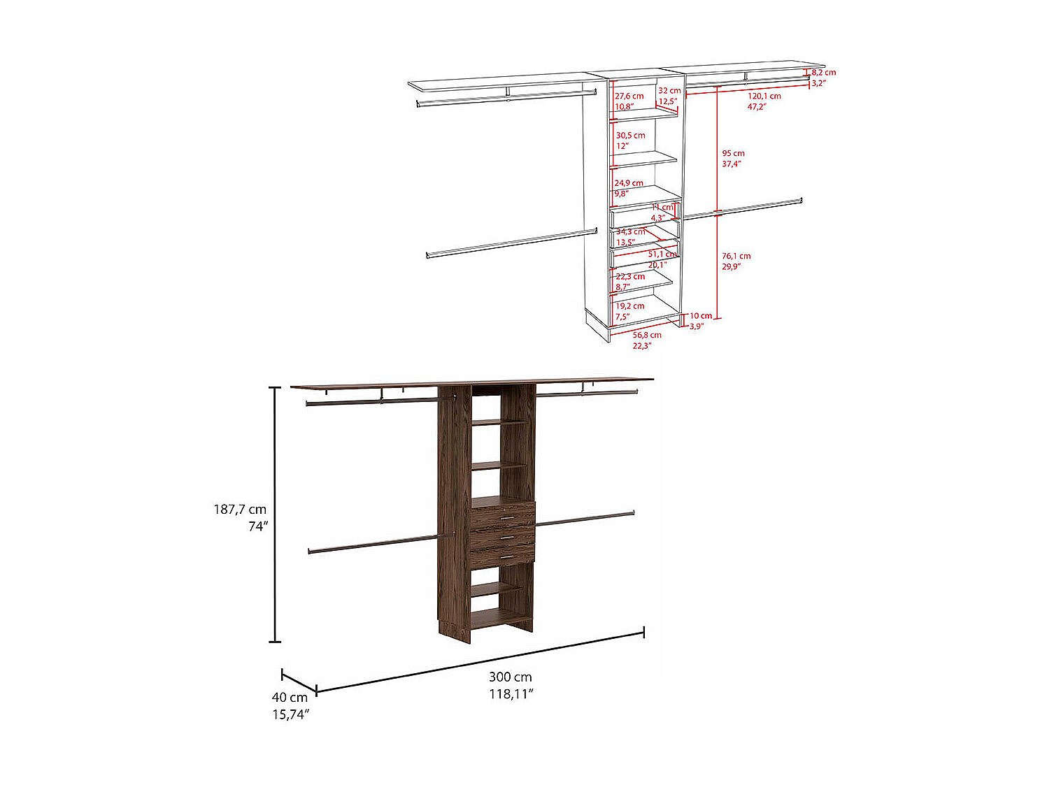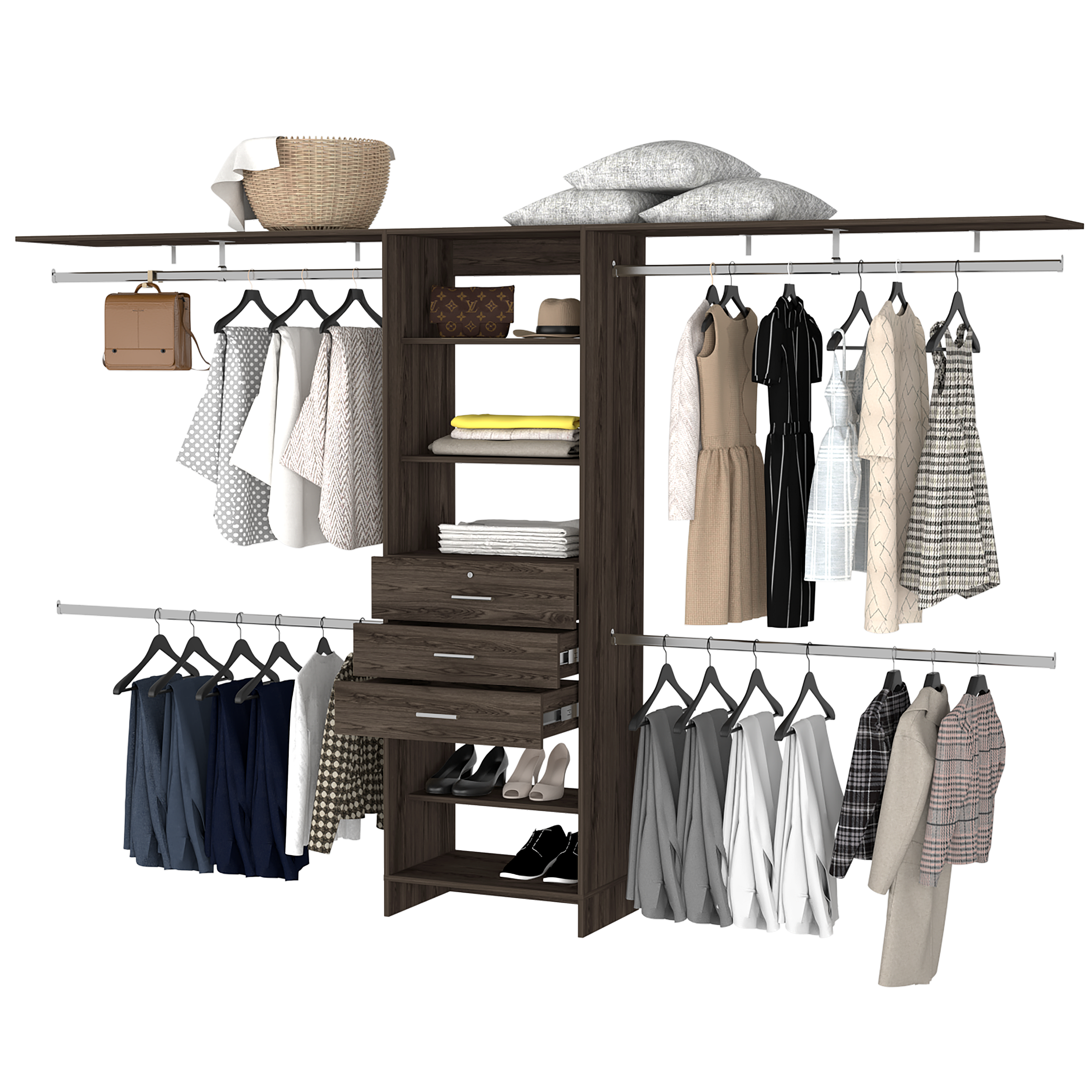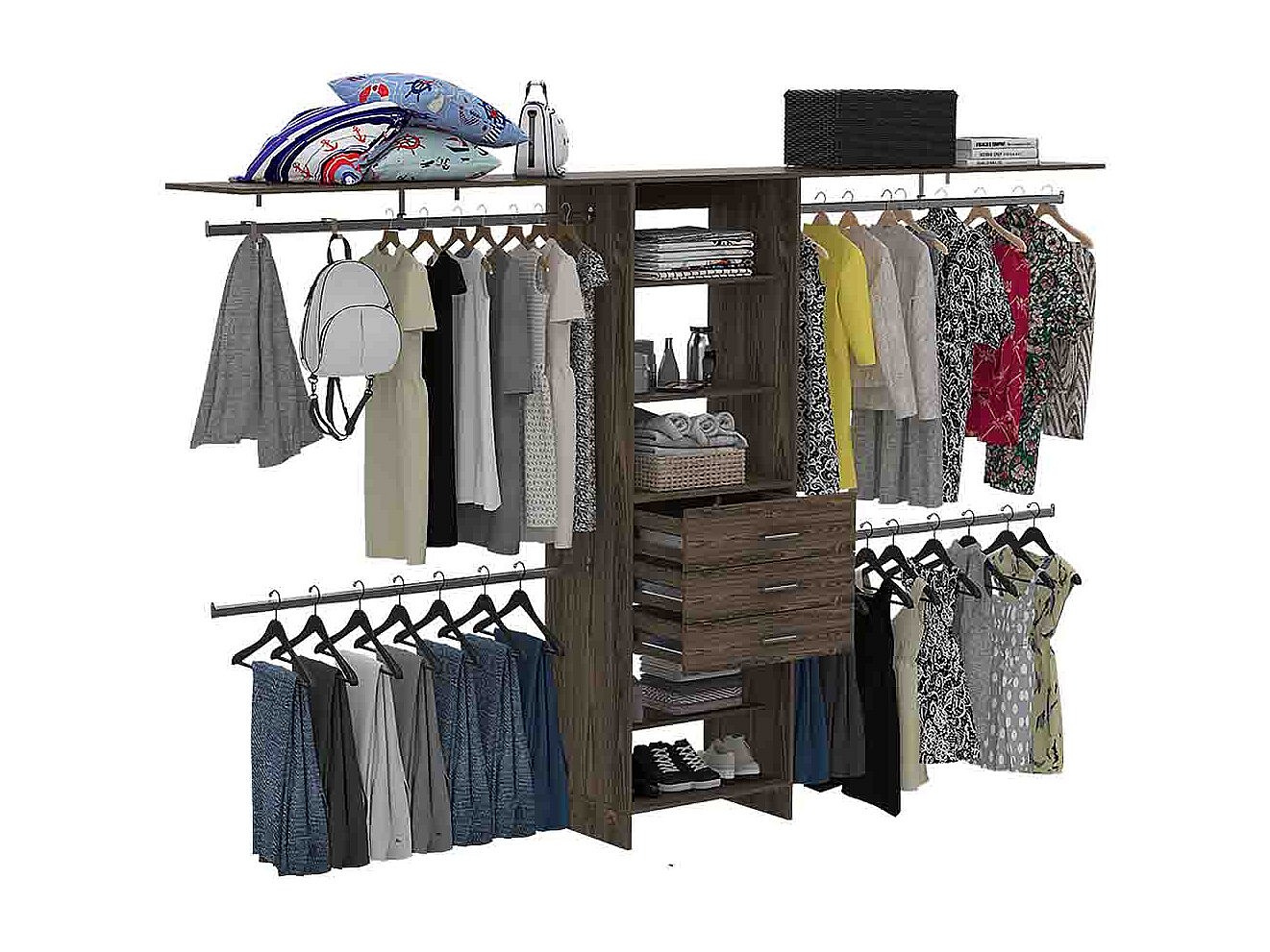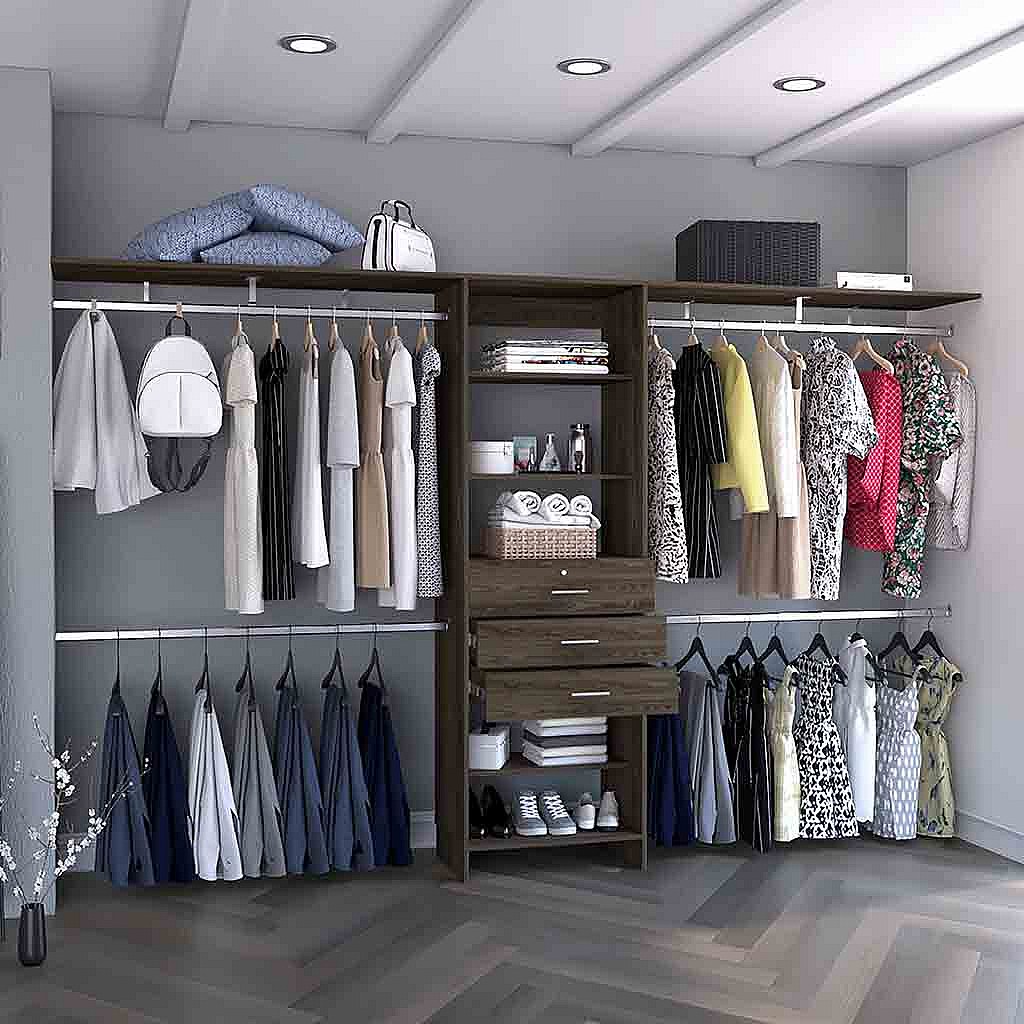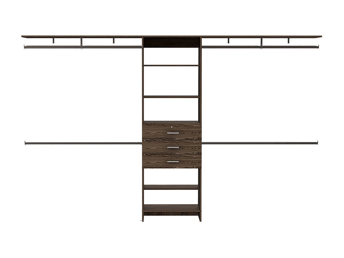 Armoire ouverte Plego, avec 3 tiroirs, étagère et rails de suspension, 187.45 cm X 299.97 cm X 41.40 cm , Brown