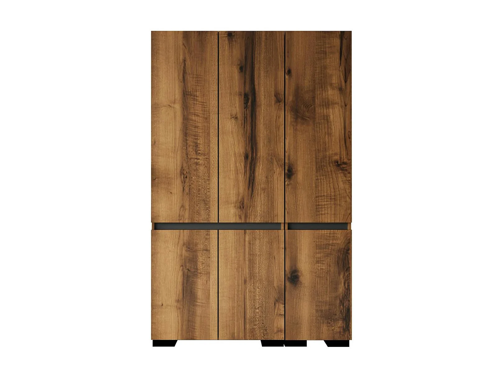 Armoire penderie 3 portes, effet noyer détail gris BYRON