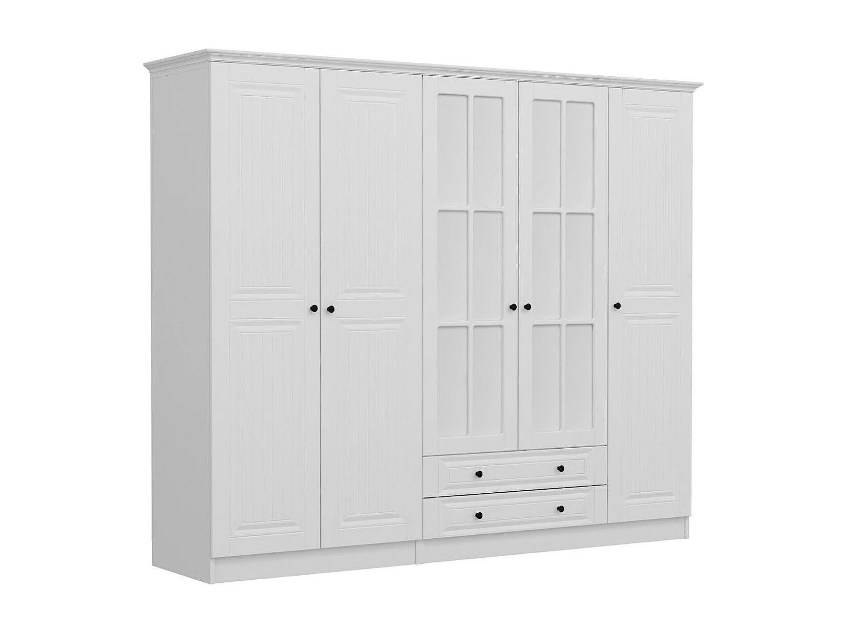 Armoire penderie blanche à moulures, 5 portes 2 miroirs BYRON