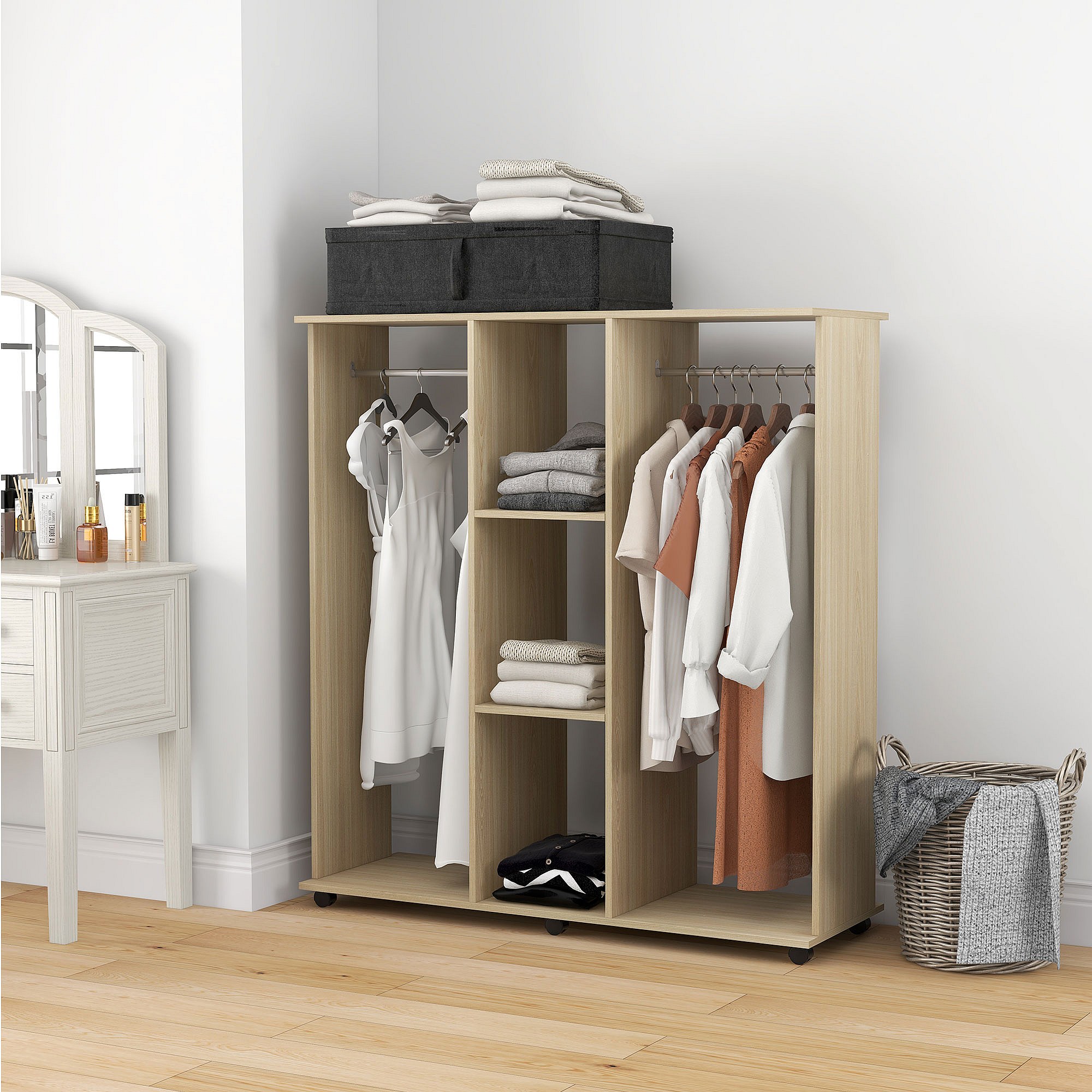 Armoire penderie meuble de rangement mobile 6 roulettes 120L x 40l x 128H cm panneaux de particules aspect bois chêne