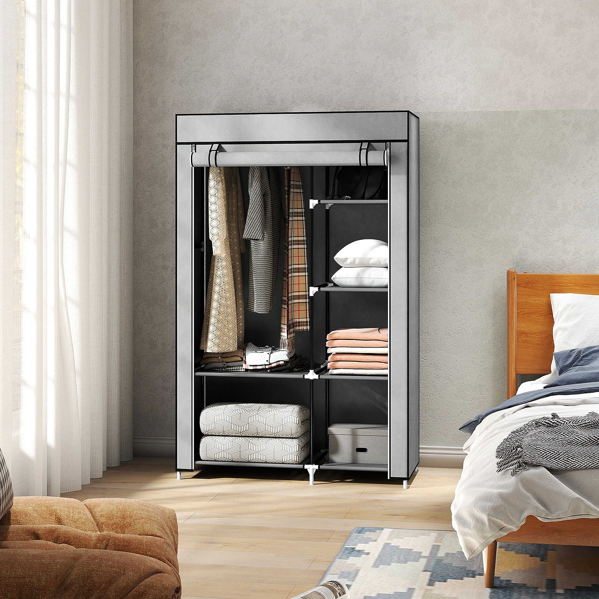 Armoire penderie multi-rangement - 6 étagères, 1 barre - dim. 103L x 43l x 162,5H cm - acier noir non tissé gris
