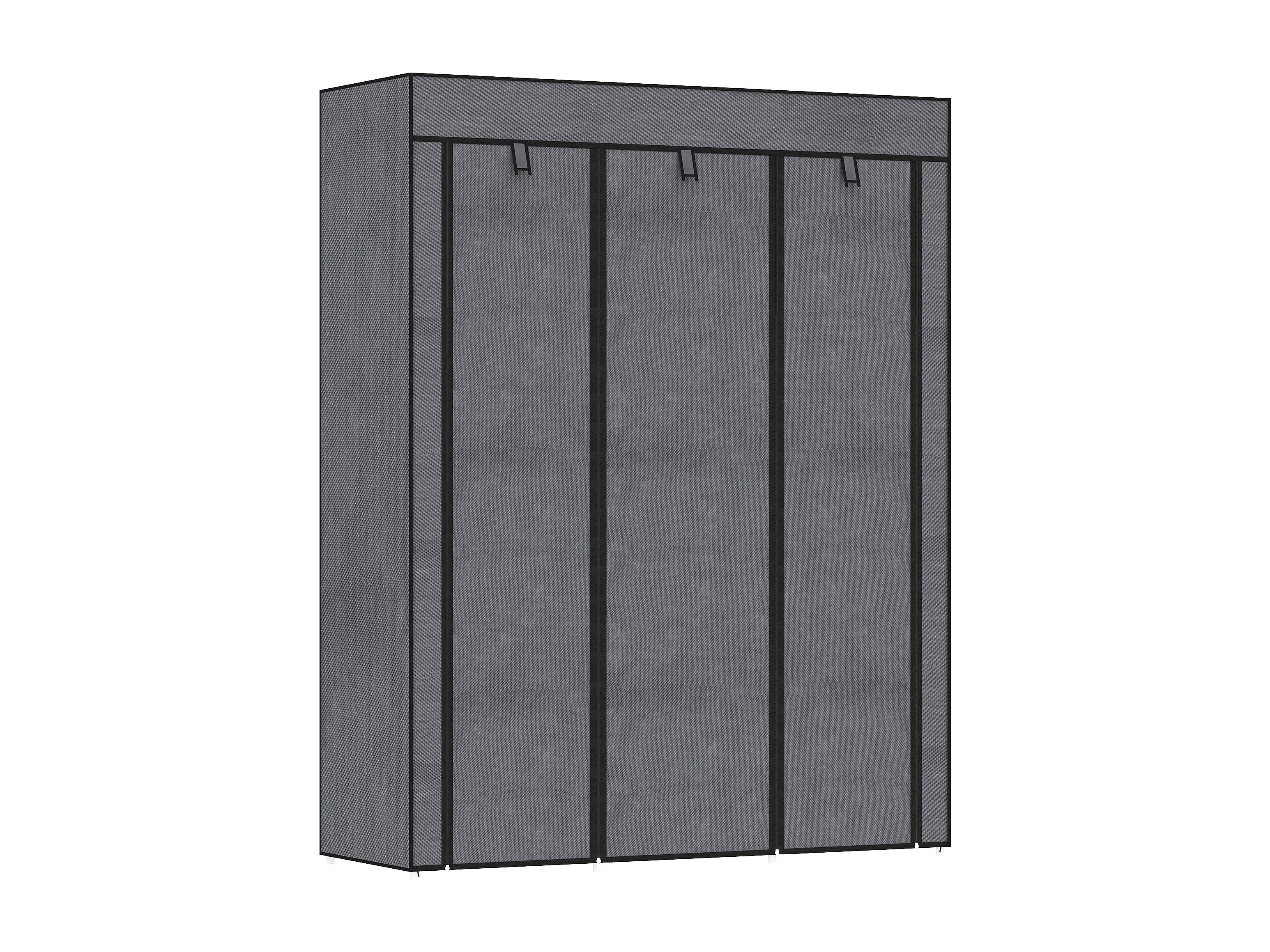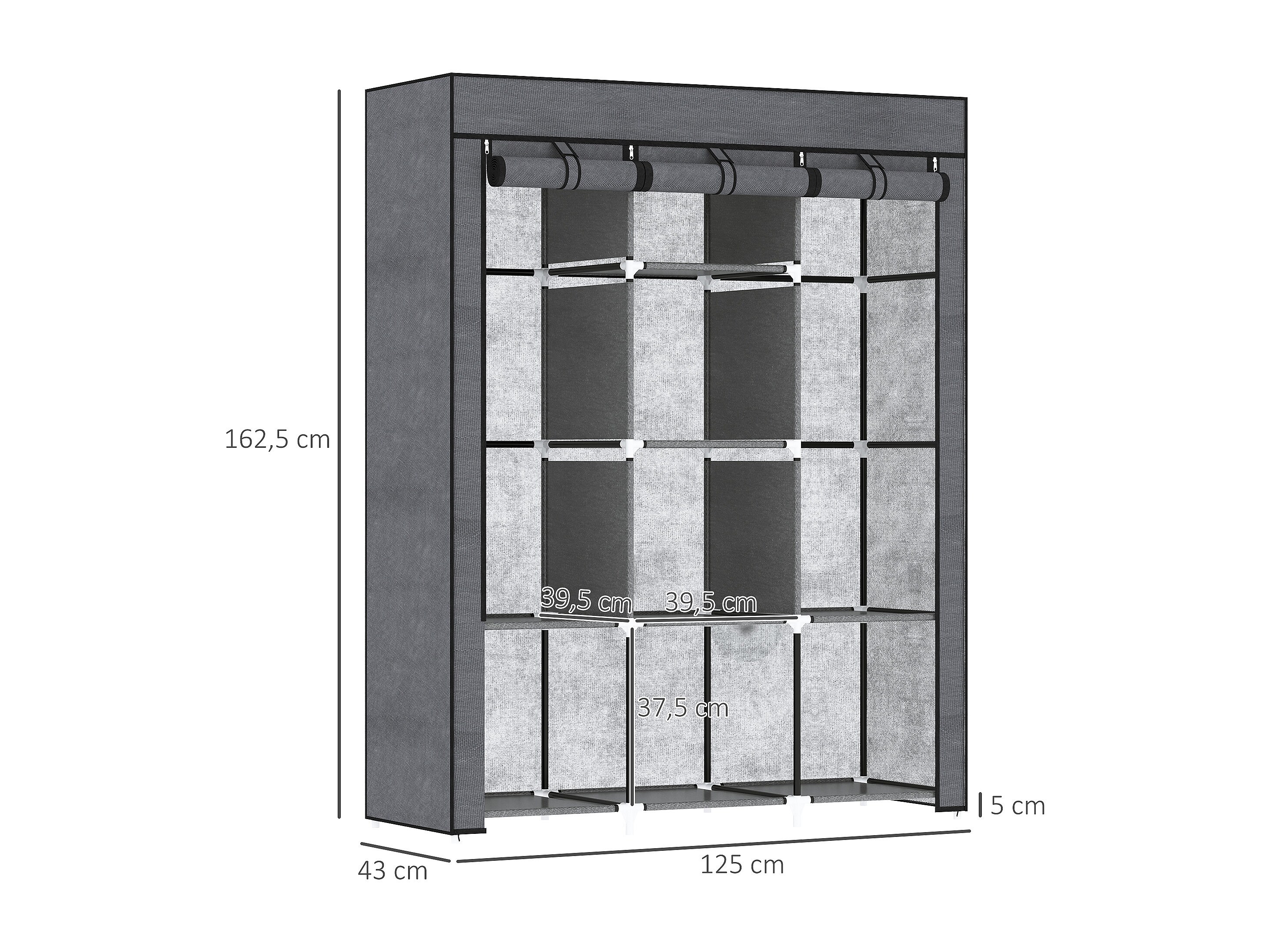 Armoire penderie multi-rangement - 8 étagères, 2 barres - dim. 125L x 43l x 162,5H cm - acier noir non tissé gris
