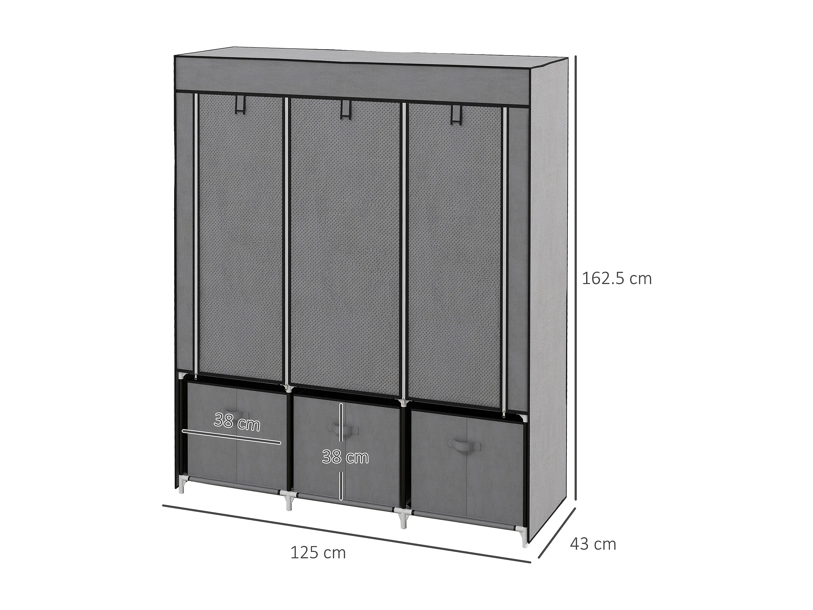 Armoire pliante 2-en-1 avec étagères et tringles, tissu non-tissé, gris foncé (125x43x162.5 cm)