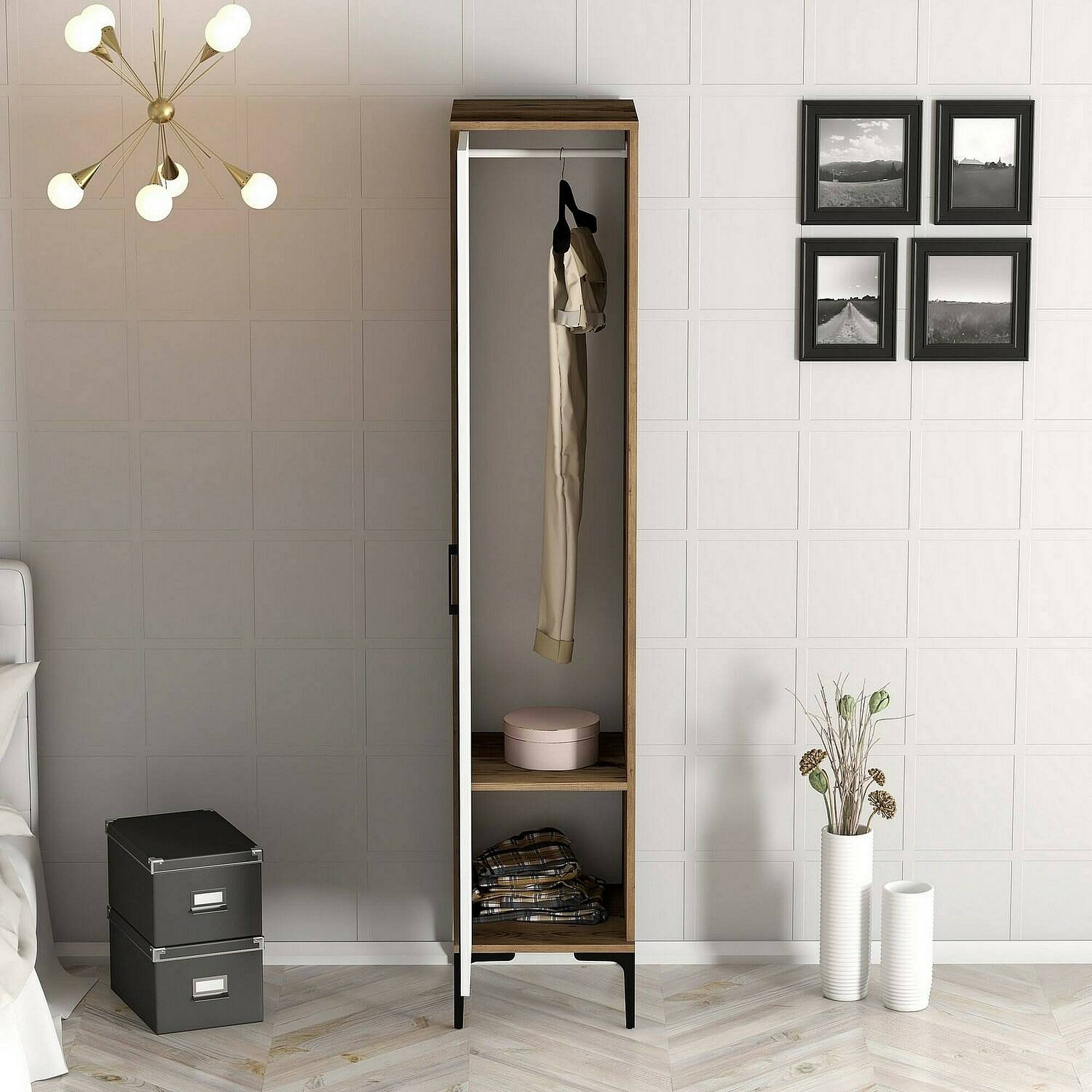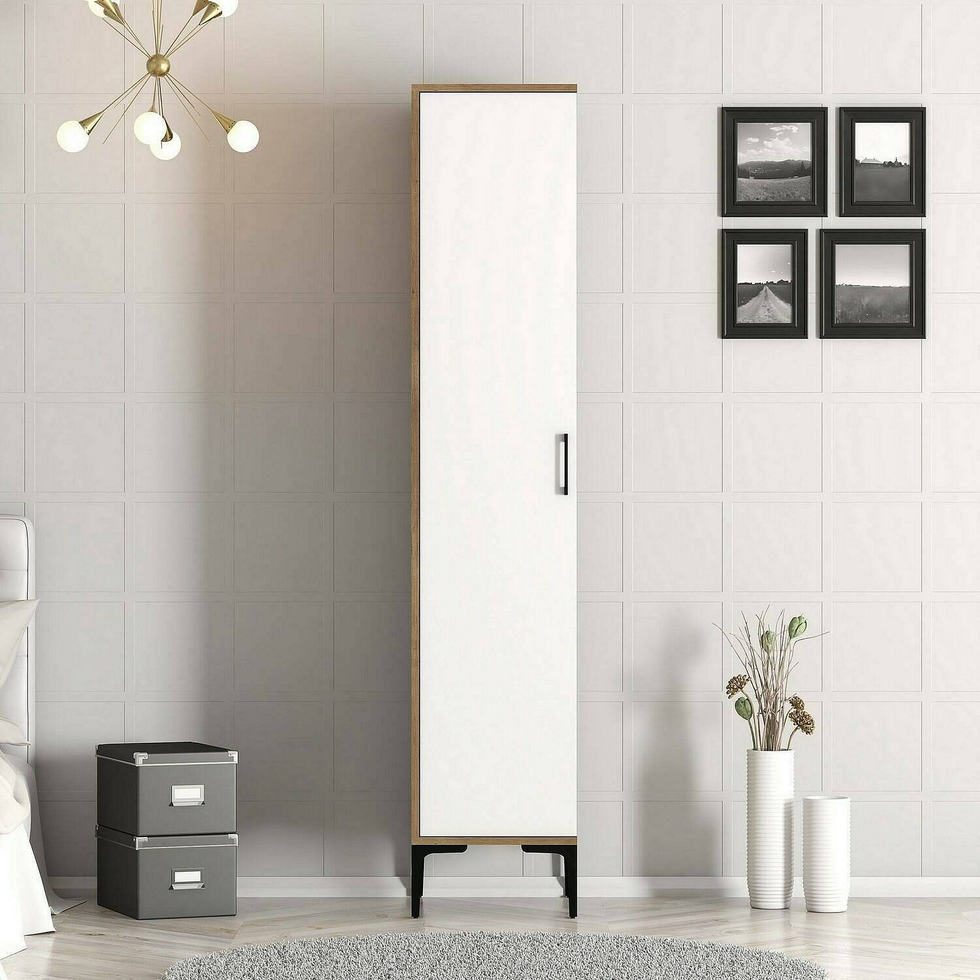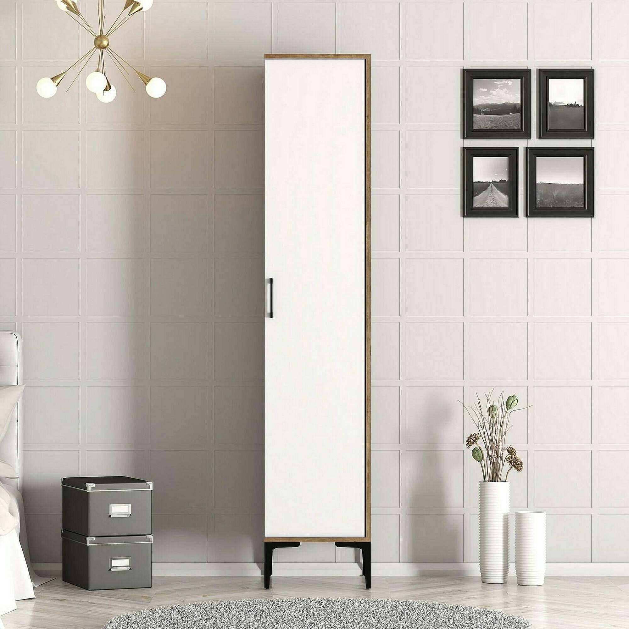 Armoire polyvalente 1 porte Dnuytinc, Meubles multifonctionnels, Casier à chaussures, Support à chaussures pour armoire, 40x201h48 cm, Noyer et Blanc