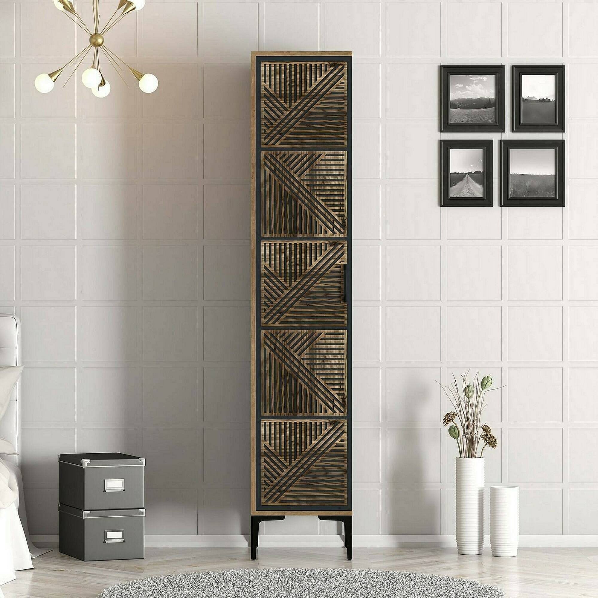 Armoire polyvalente 1 porte Dnuytinc, Meubles multifonctionnels, Casier à chaussures, Support à chaussures pour armoire, 48x40h201 cm, Noyer et Anthracite