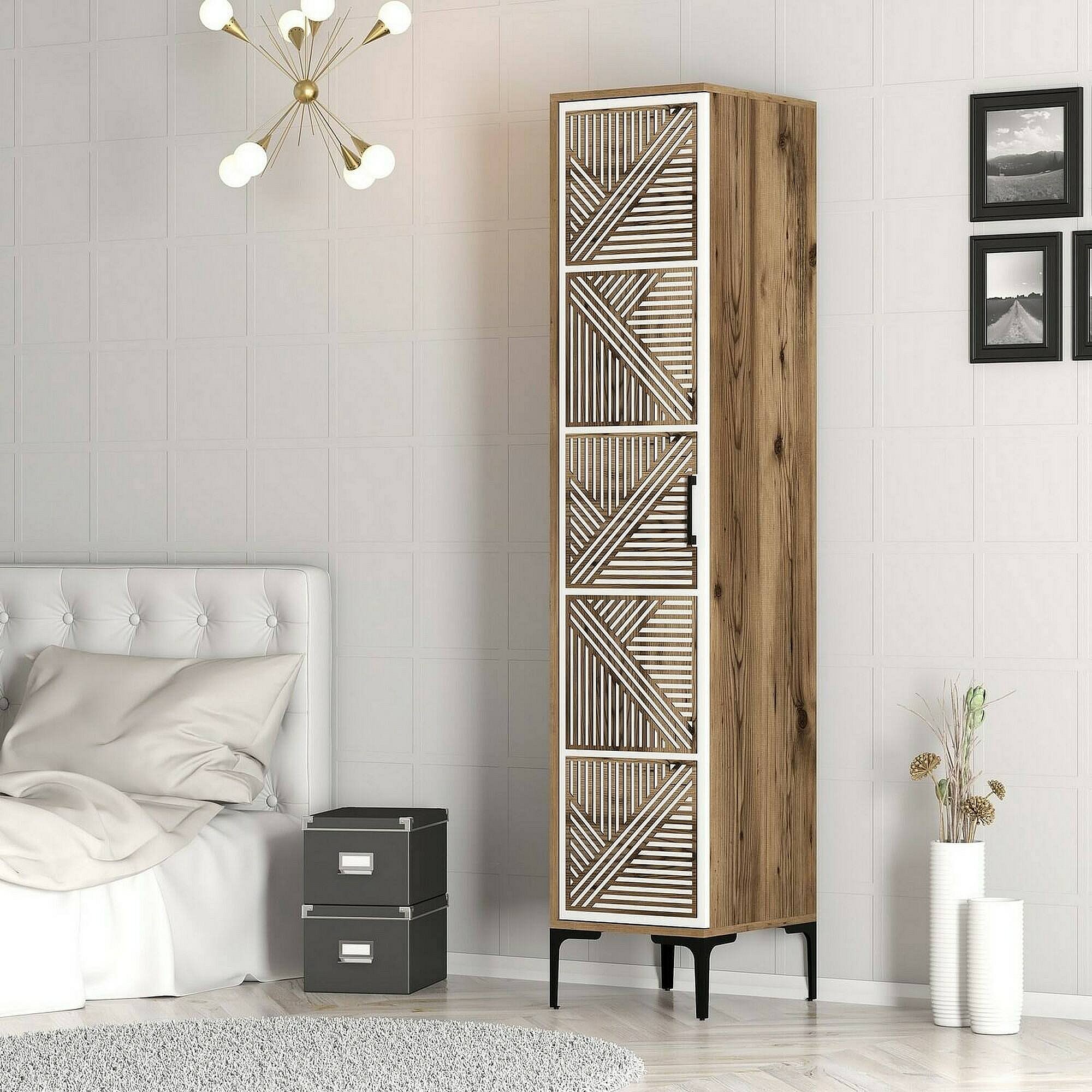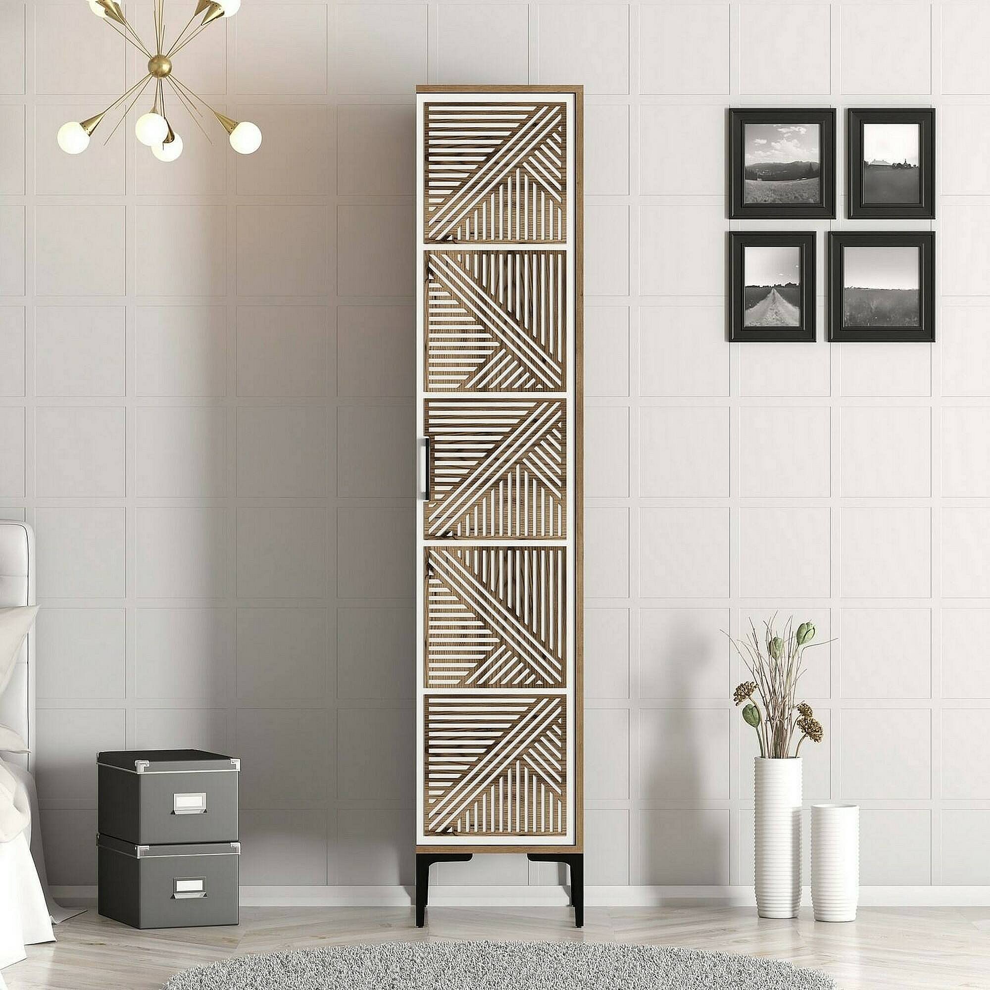 Armoire polyvalente 1 porte Dnuytinc, Meubles multifonctionnels, Casier à chaussures, Support à chaussures pour armoire, 48x40h201 cm, Noyer et Blanc