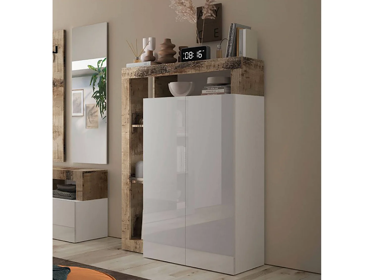 Armoire polyvalente à 2 portes Dbea, Meubles multifonctionnels, Support à chaussures, Made in Italy, 78x35 h116 cm, Blanc brillant et Chêne clair