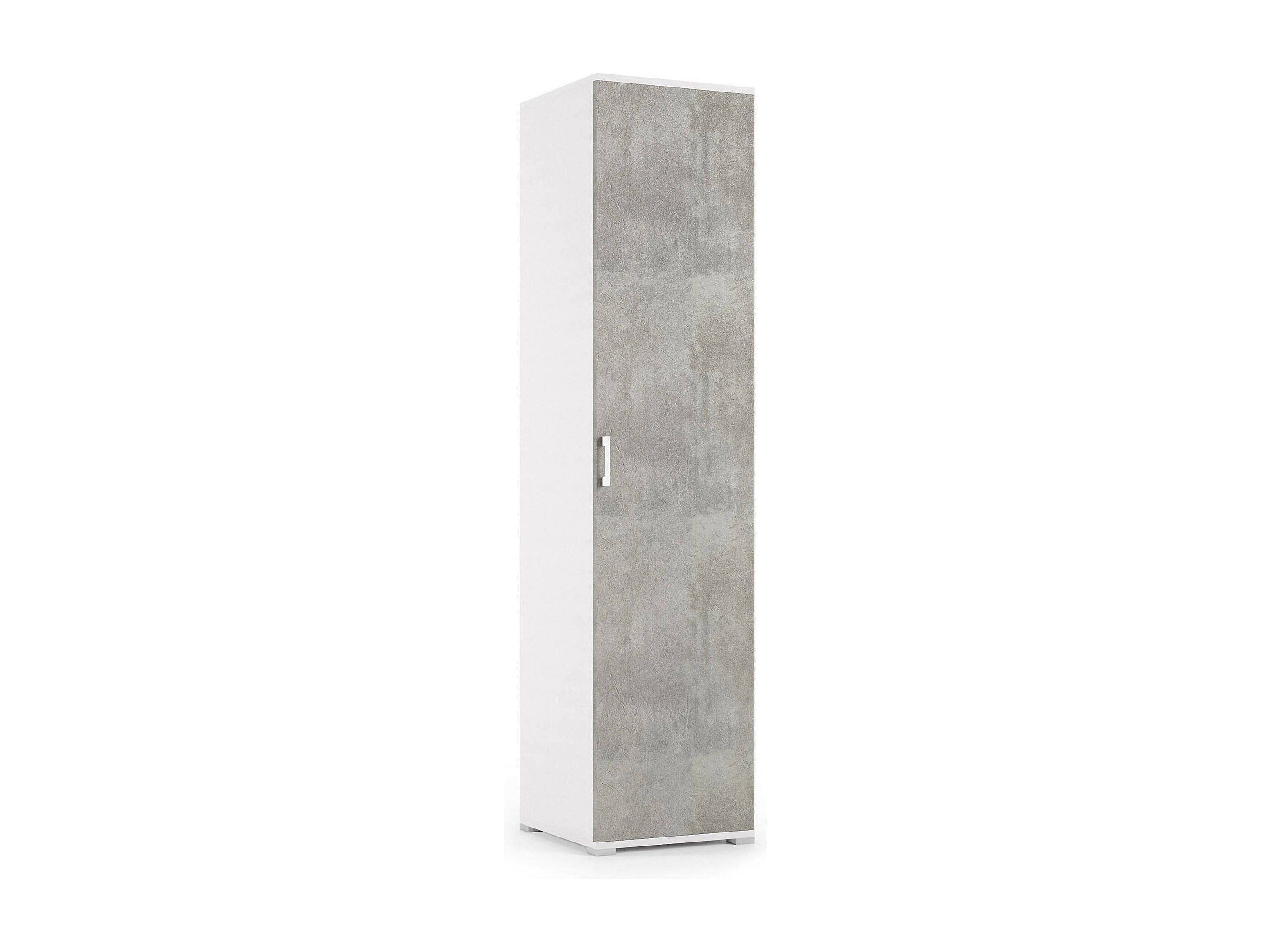 Armadio multiuso Aquilegia, Mobile lineare a 1 Anta battenti e 4 ripiani regolabili, Mobile a colonna per bagno, 100% Made in Italy, 45x45h195 cm, Cemento e Bianco