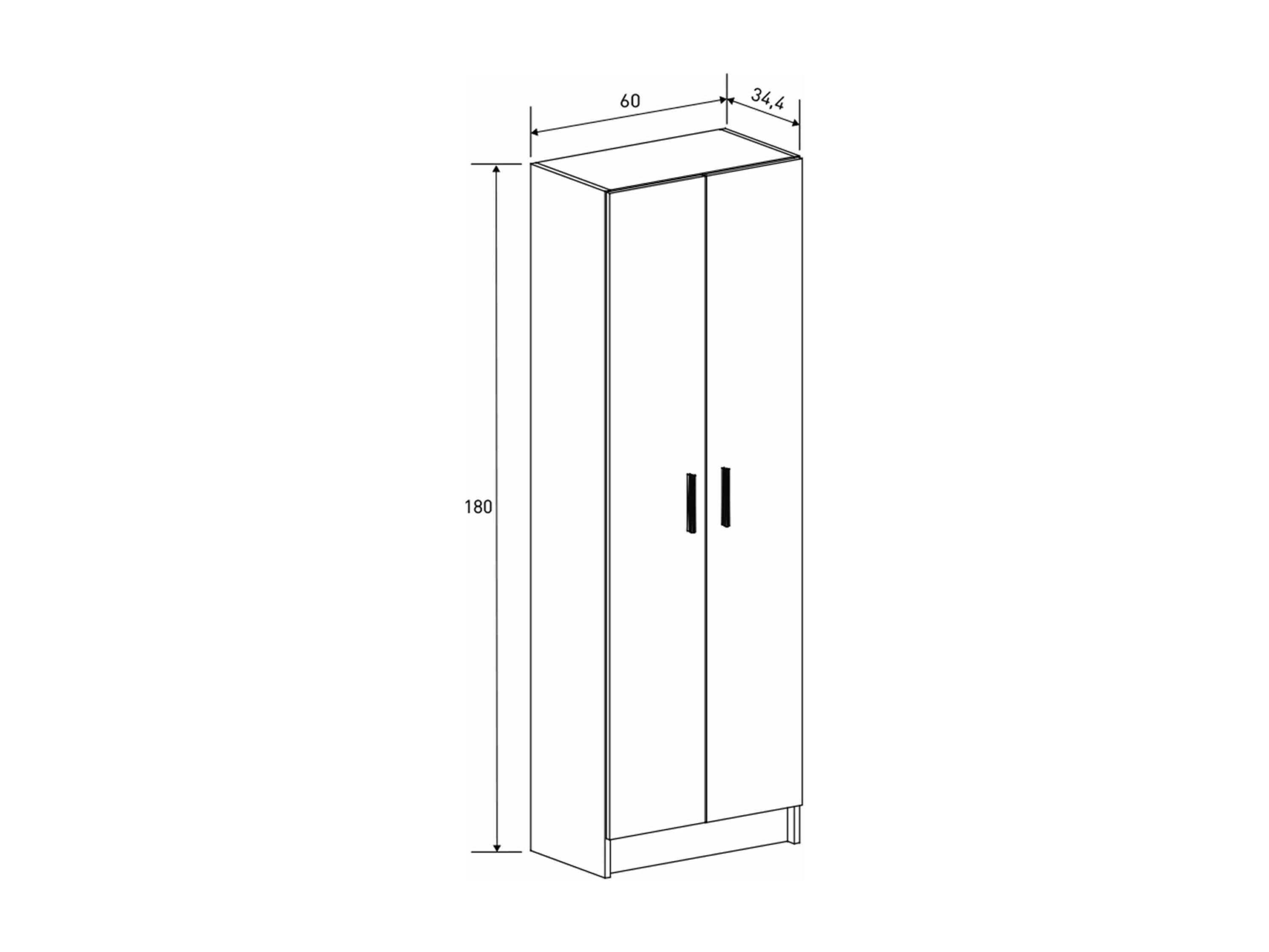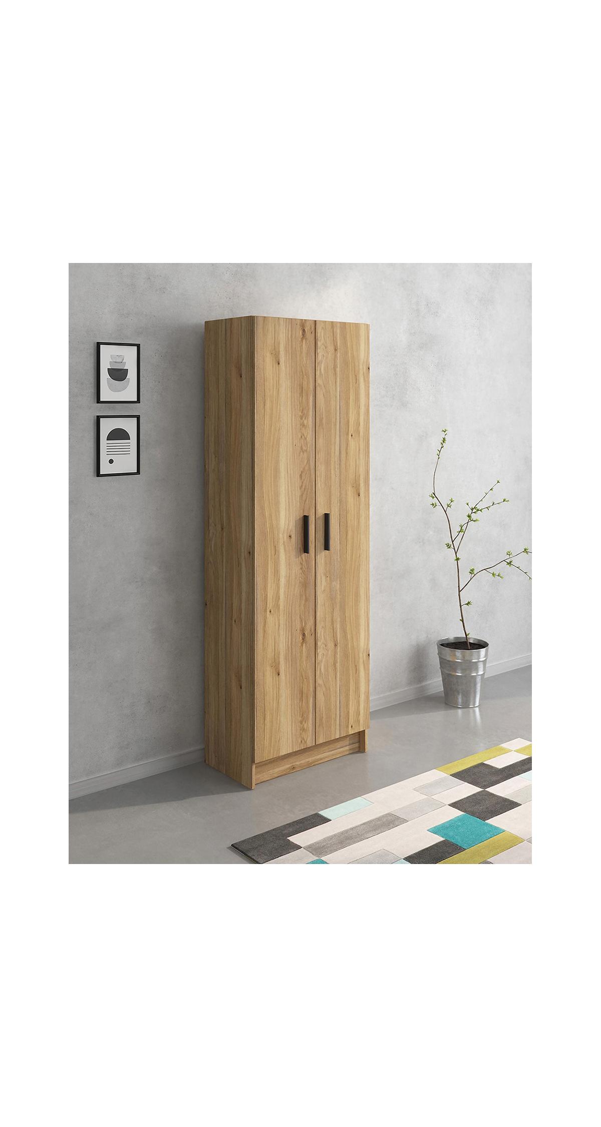 Armoire polyvalente avec 2 portes coloris chêne Mauvella - Longueur 60 x profondeur 34,40 x hauteur 180 cm