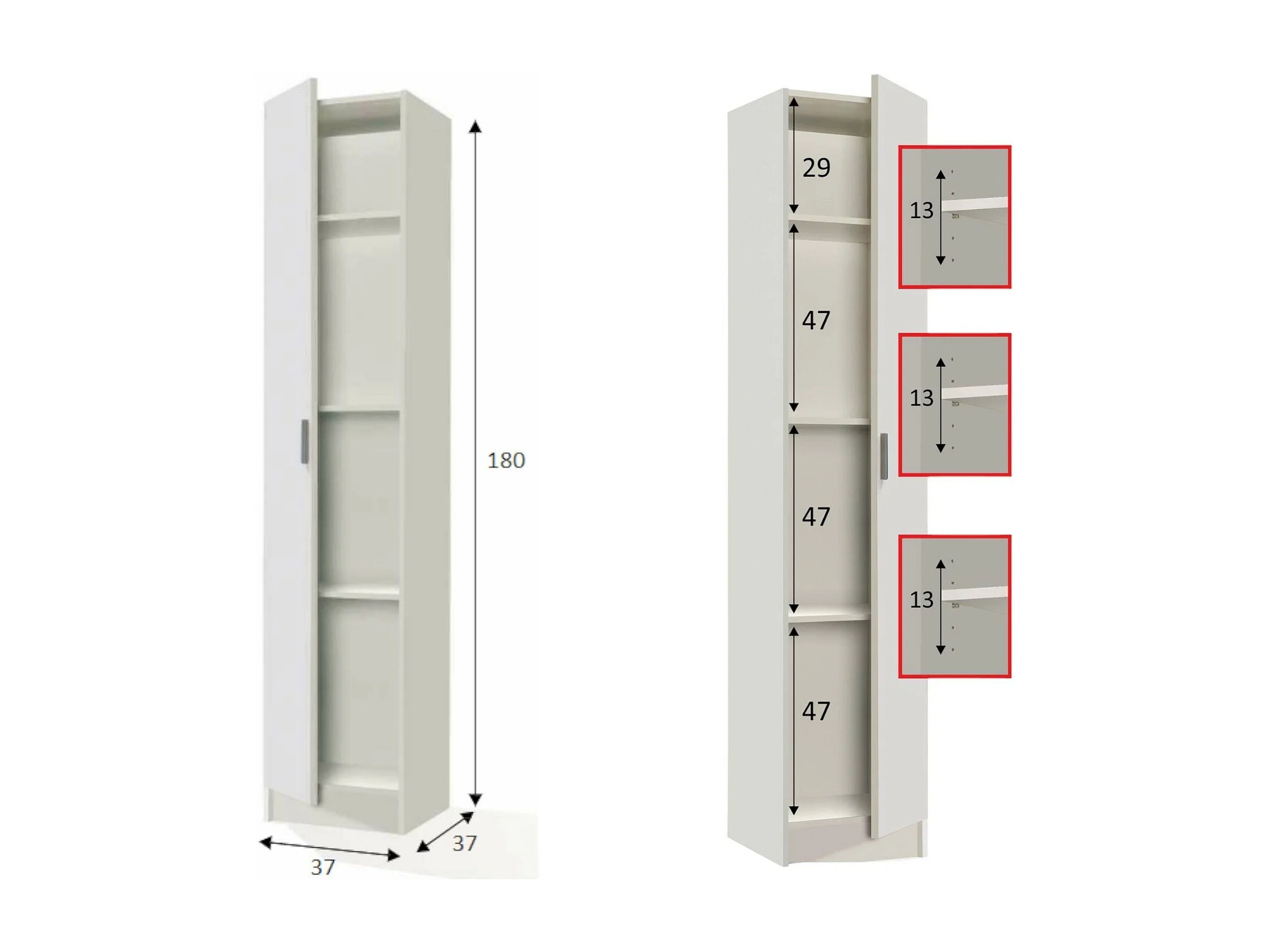Armoire polyvalente Dibels, Armoire auxiliaire avec 1 porte, Armoire à chaussures avec étagères, Étagère à chaussures verticale, 37x37h180 cm, Blanc