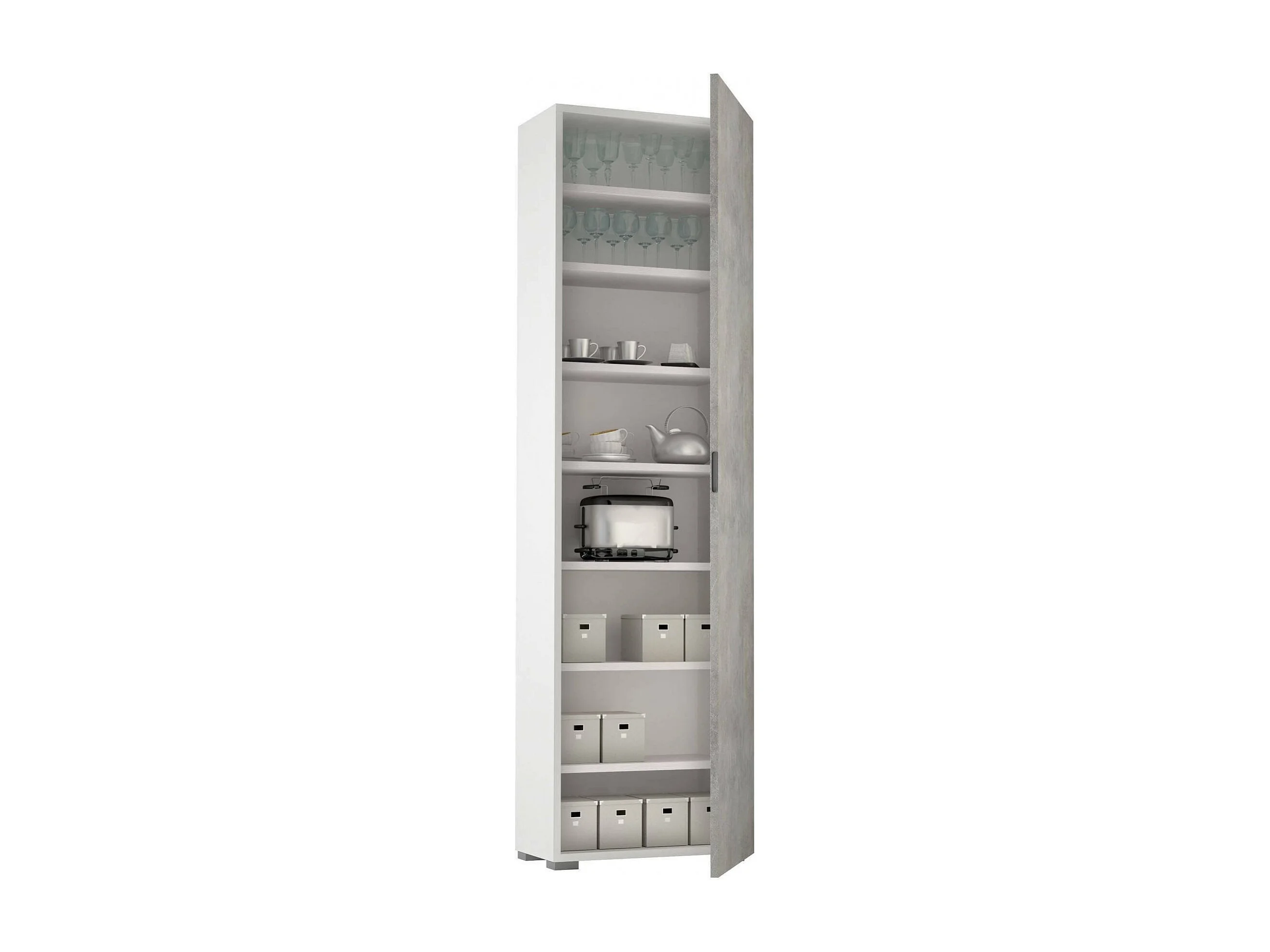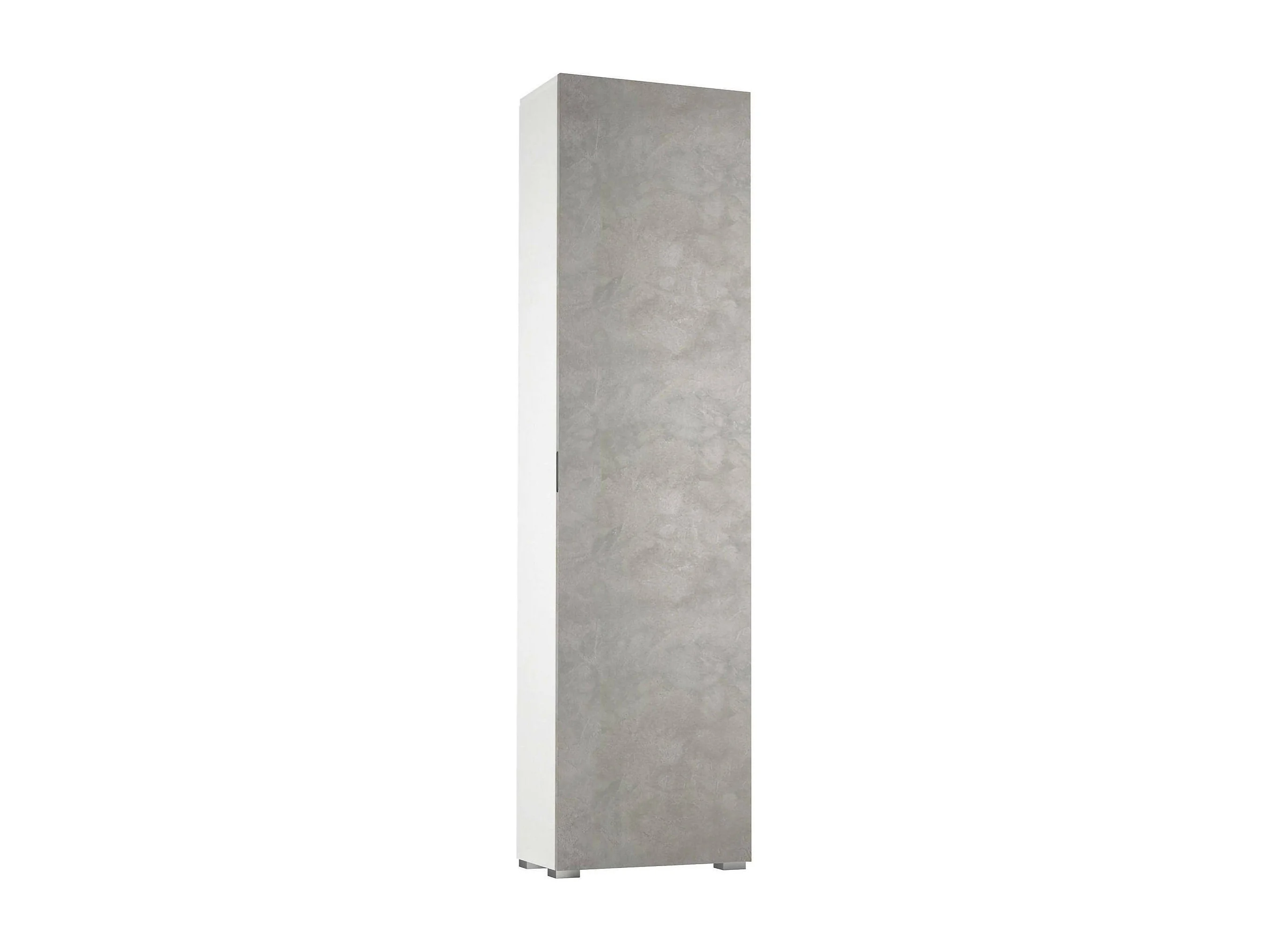 Armario multiusos Ddarbo, Mueble lineal con 1 puerta y 7 baldas, Columna de entrada o baño, zapatero moderno, 100% Made in Italy, 50x30h182 cm, Cemento y Blanco