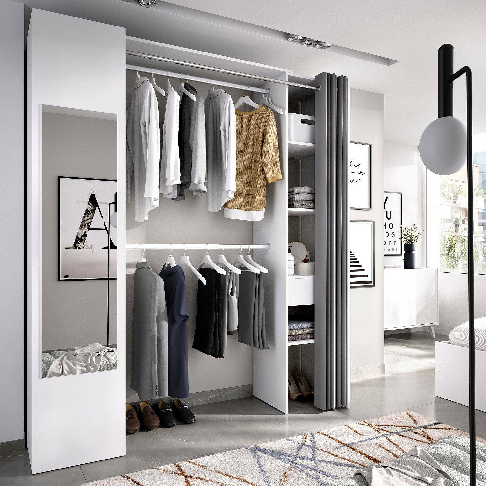 Armoire Rigi, Structure pour dressing, Cintre ouvert, 177x52h205 cm, Blanc et Anthracite