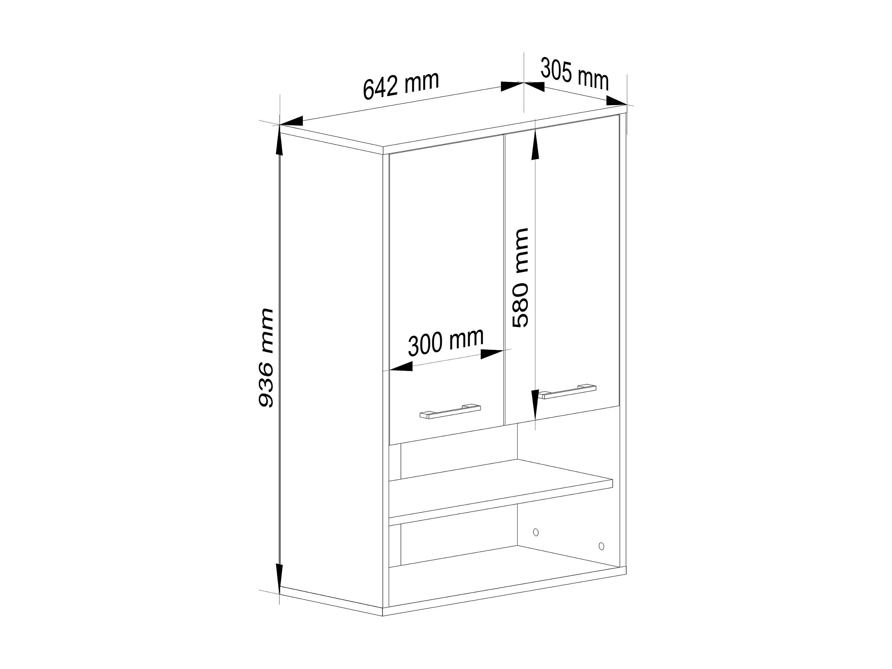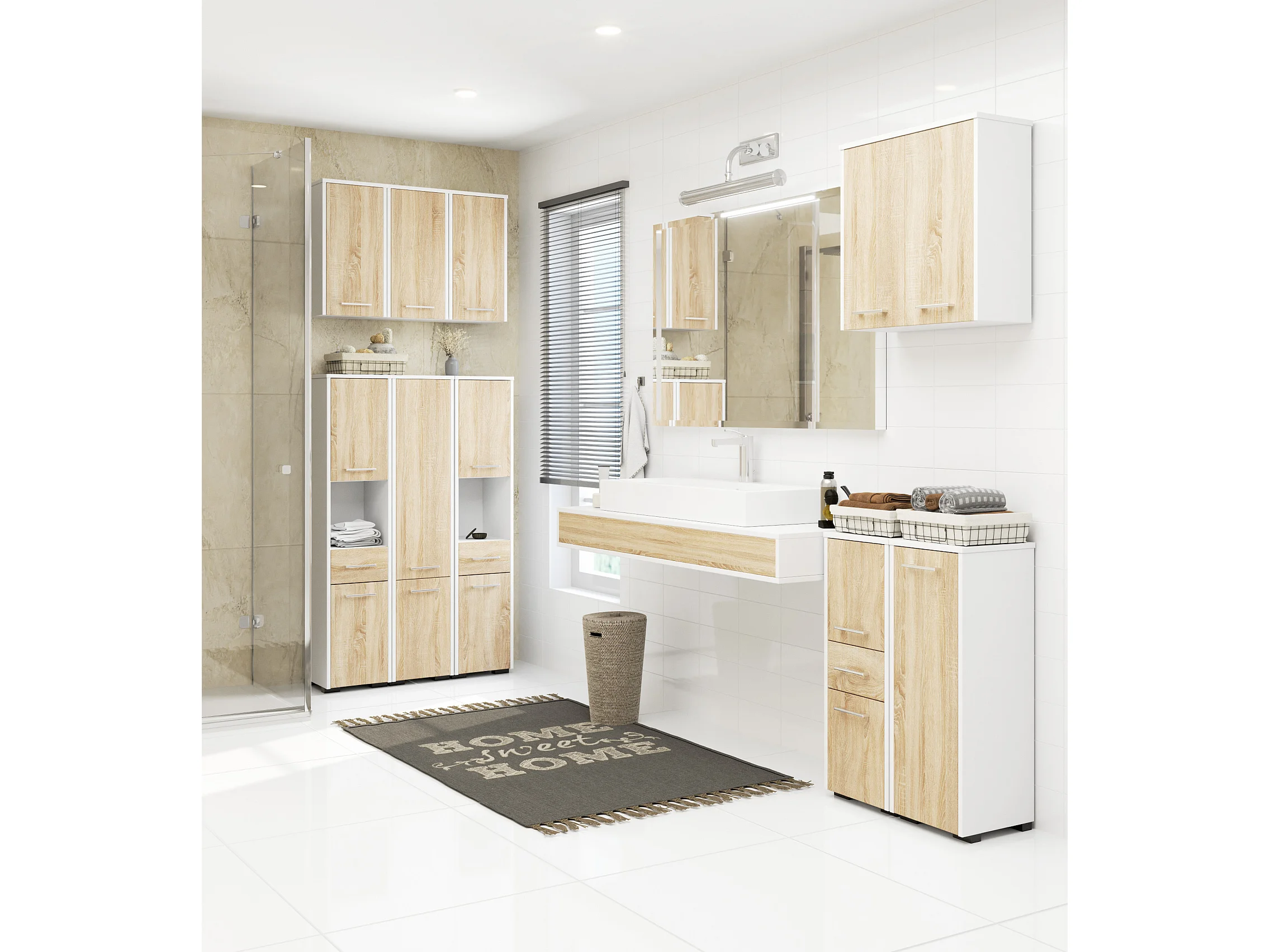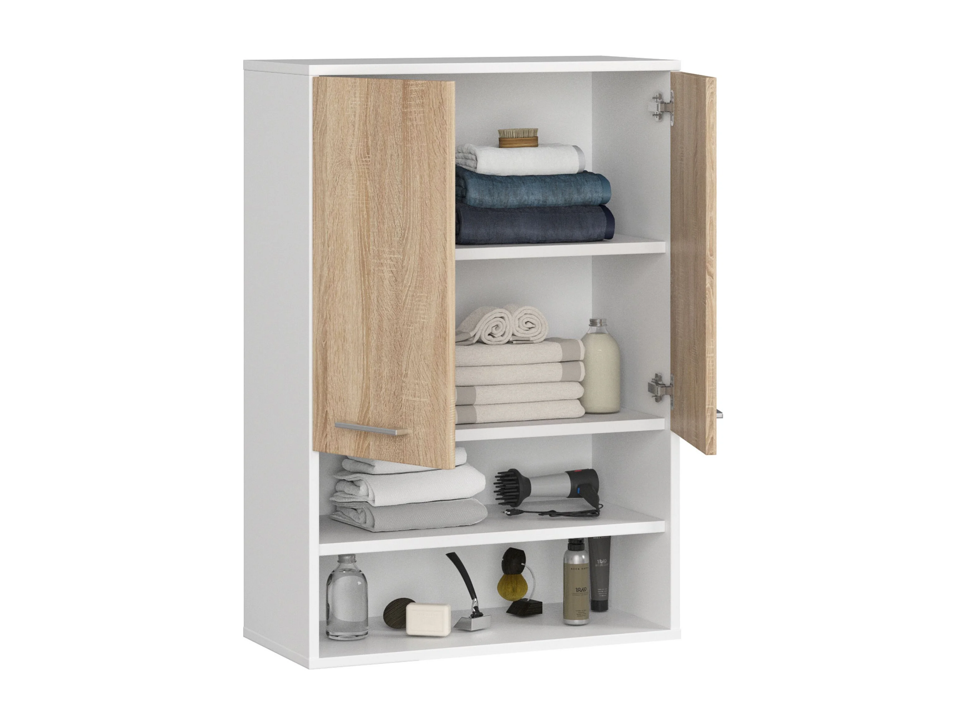 Armoire salle de bains suspendue AKORD FIN Blanche 64 cm 2 portes façade Chêne Sonoma 4 étagères 64x30x94 cm