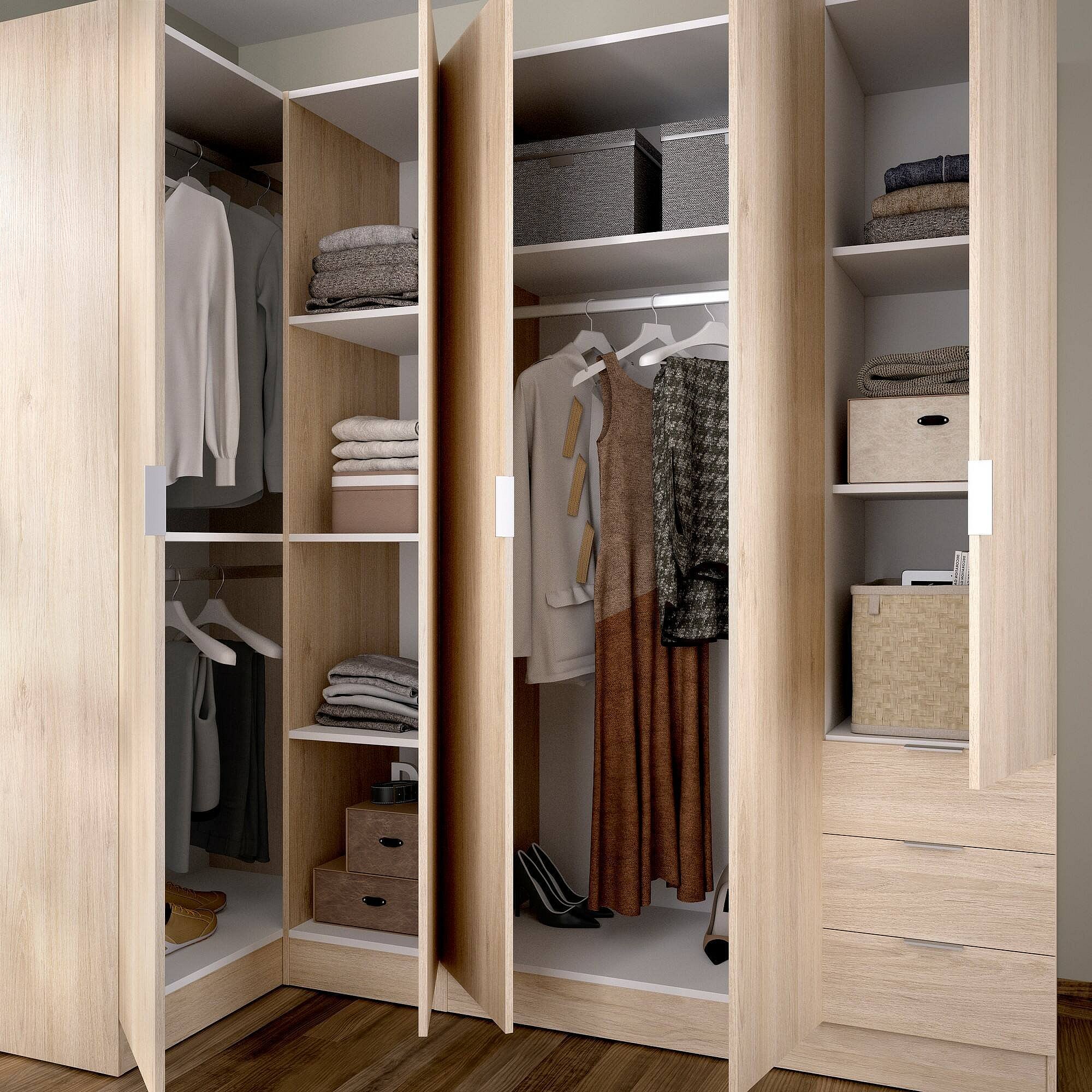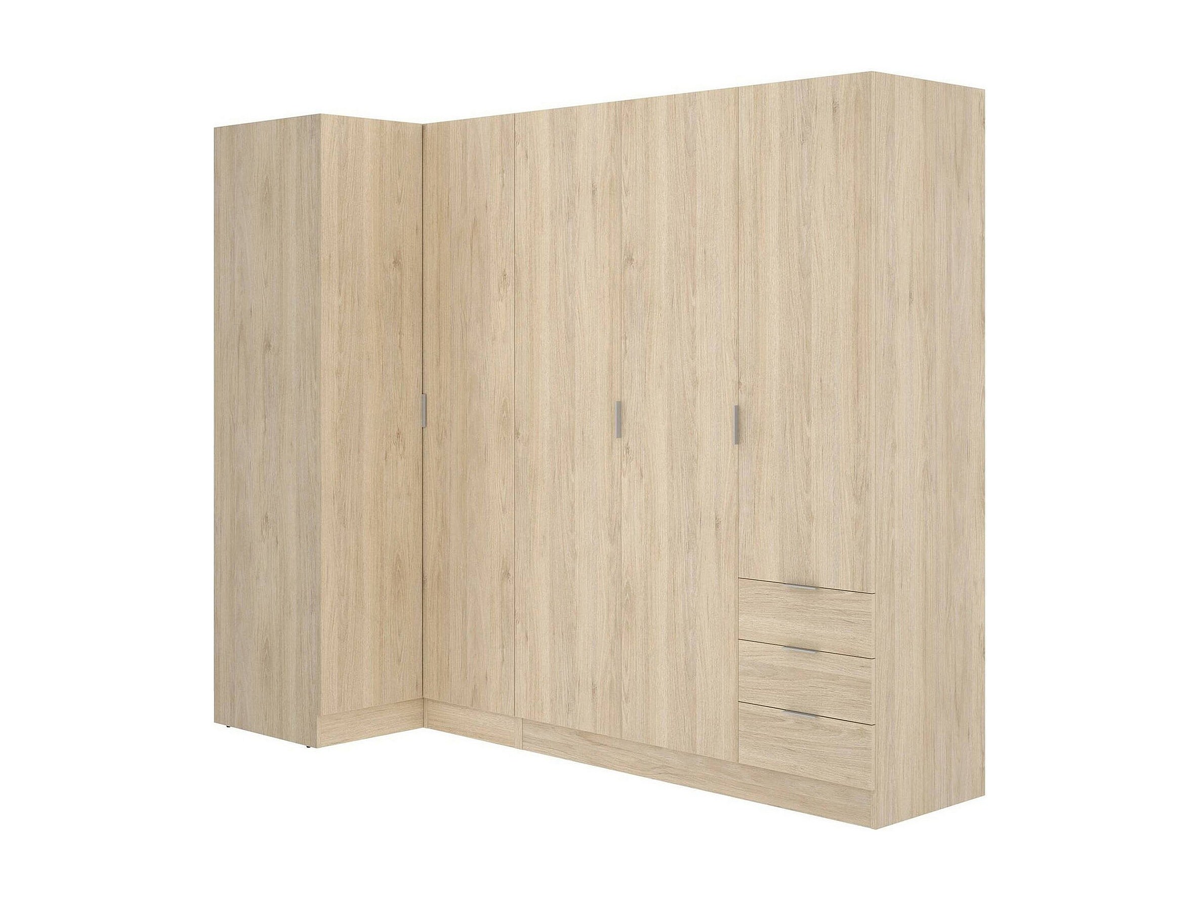 Armoire Dmezzan, Armoire d'angle pour chambre à coucher, Armoire d'angle avec 5 portes battantes, 214x91h184 cm, Chêne