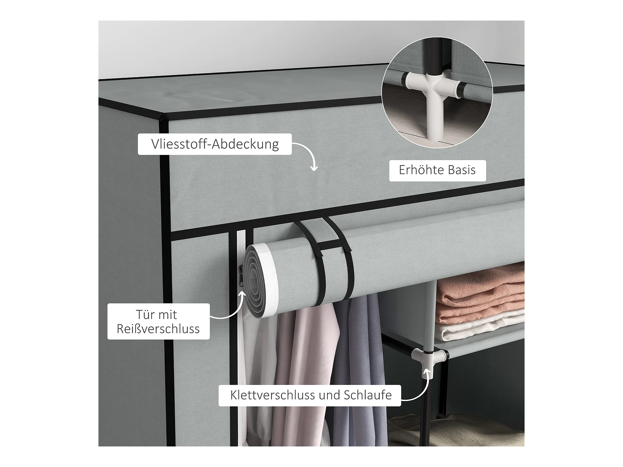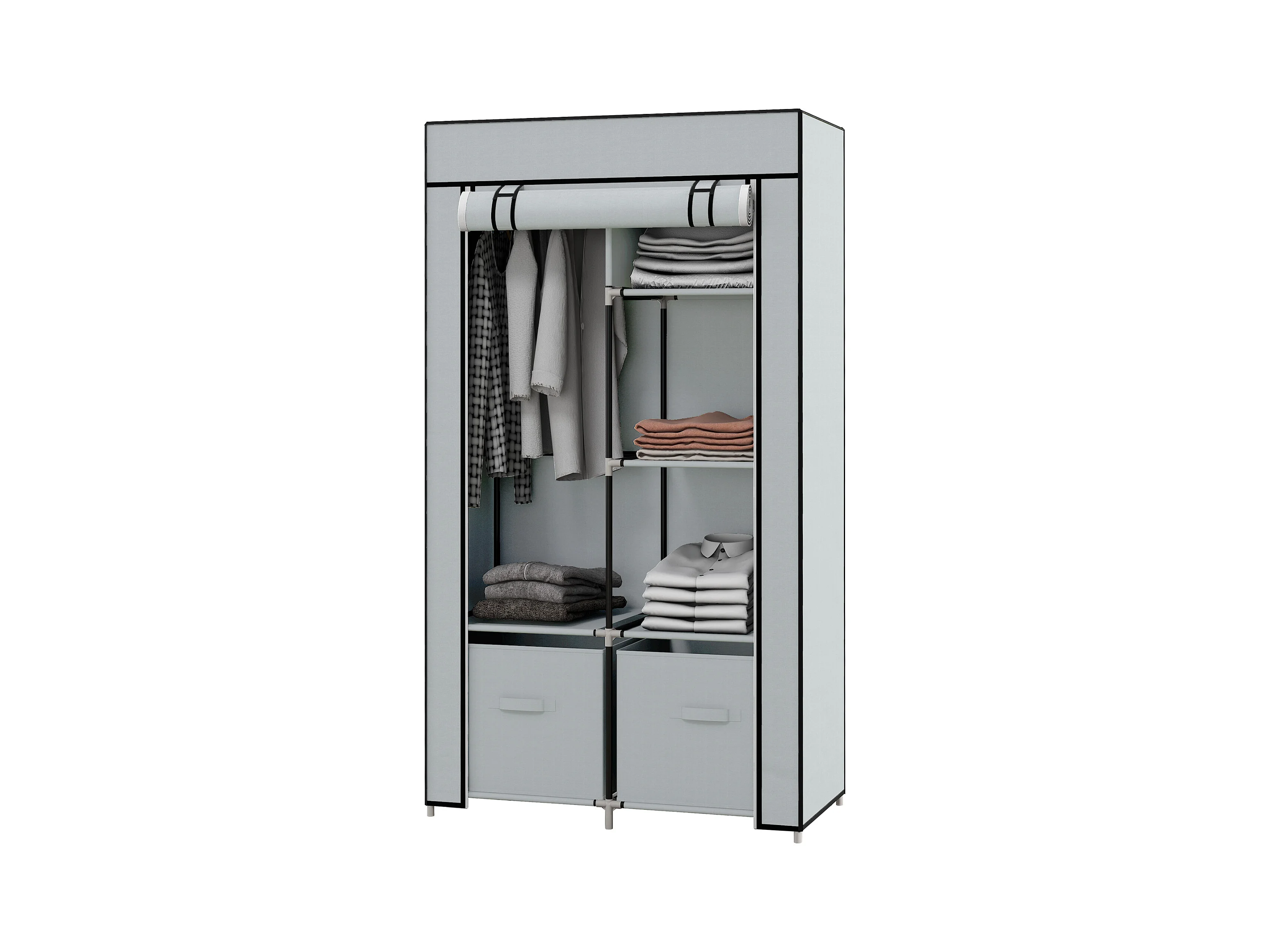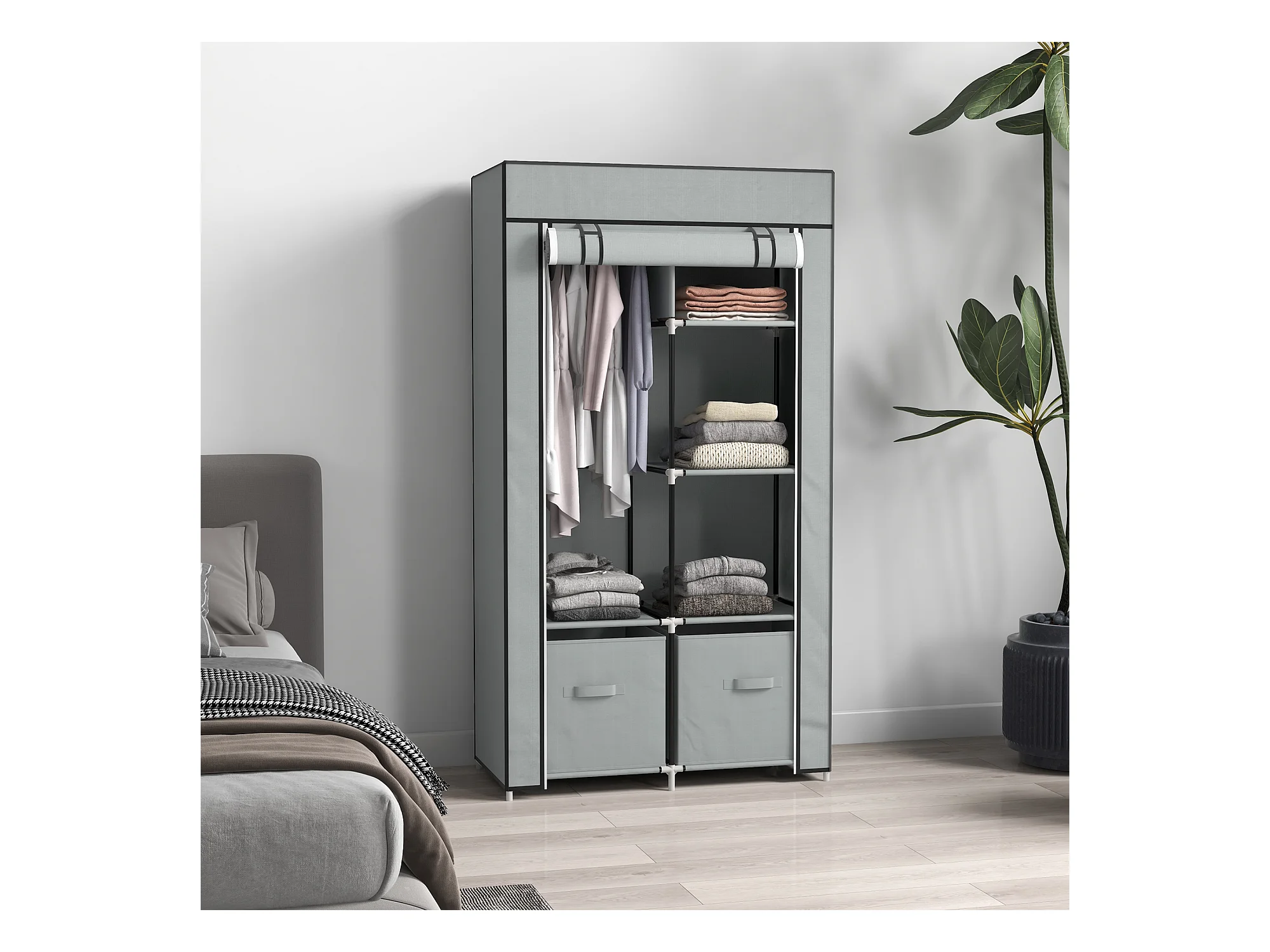 Armoire à vêtements en tissu avec 2 barres de suspension, 4 étagères, gris clair (118x49x170 cm)