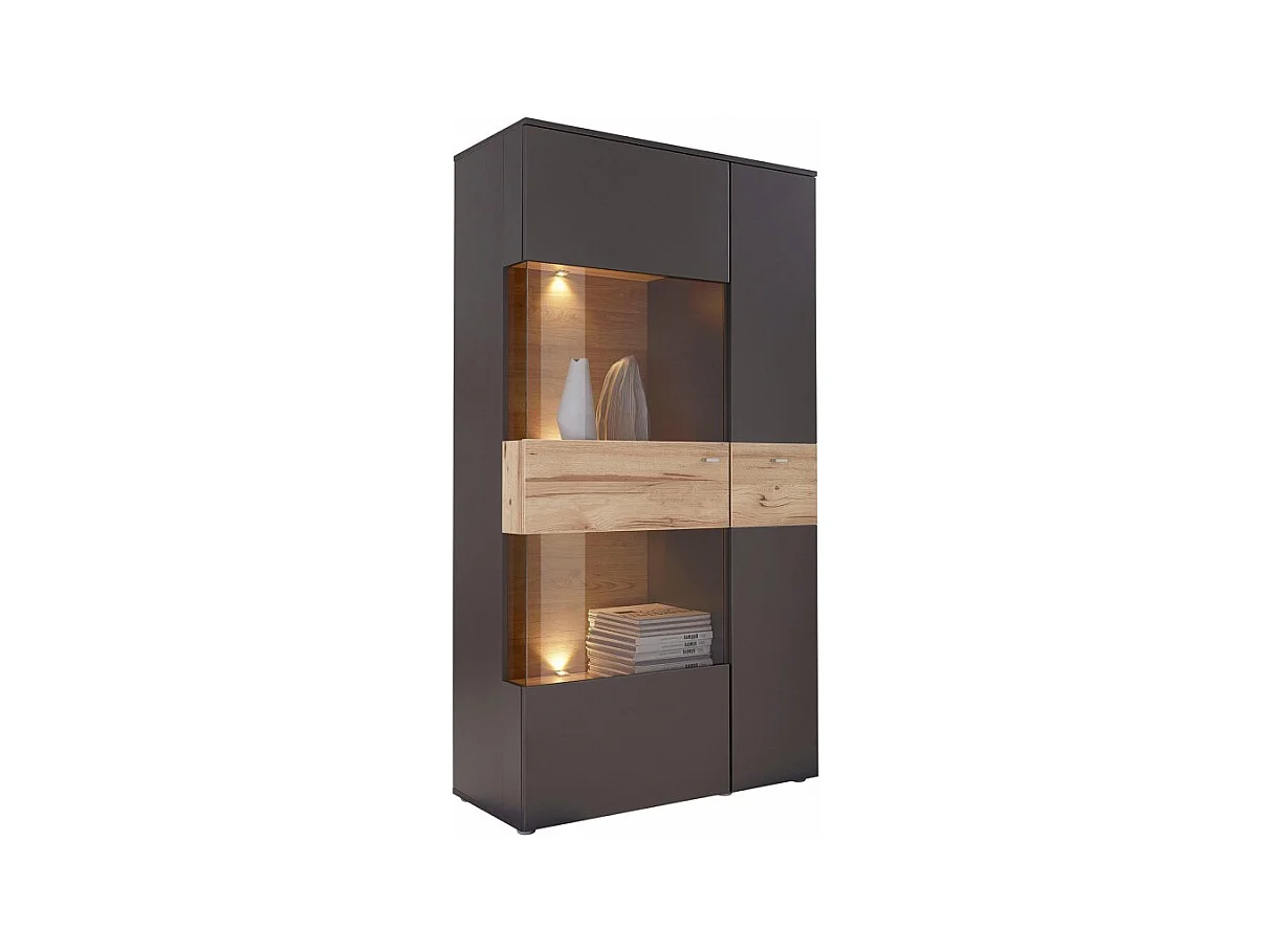 Armoire vitrée 2 portes ouverture gauche décor bois et gris - MARBELLA