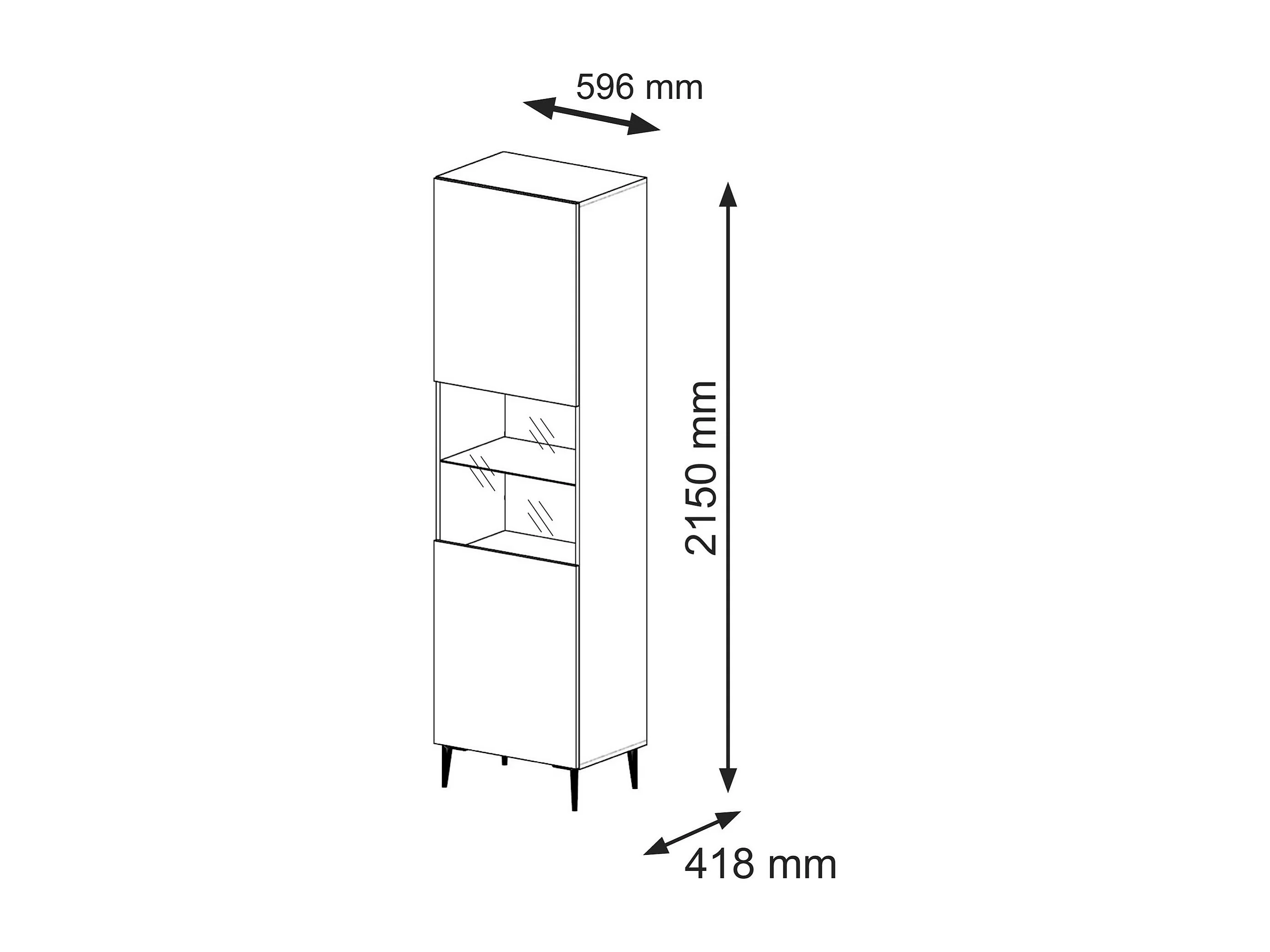 Armoire vitrine RavennaB 60x42x215 Noir