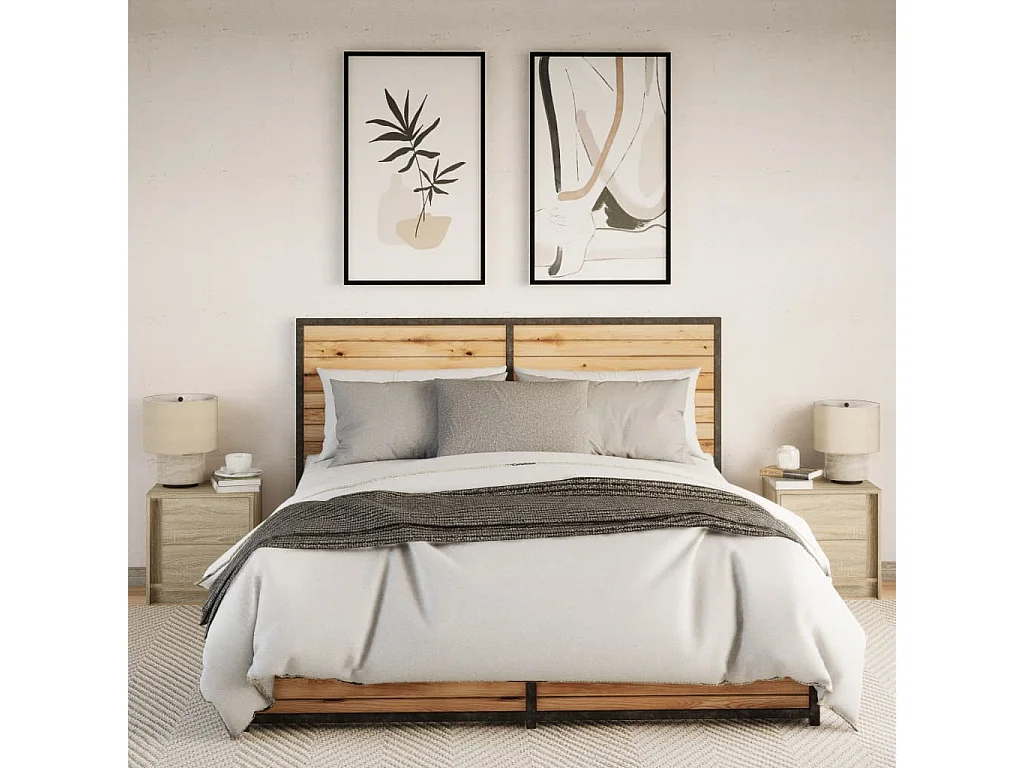 Armoires de chevet et lumières LED 2 pcs chêne sonoma