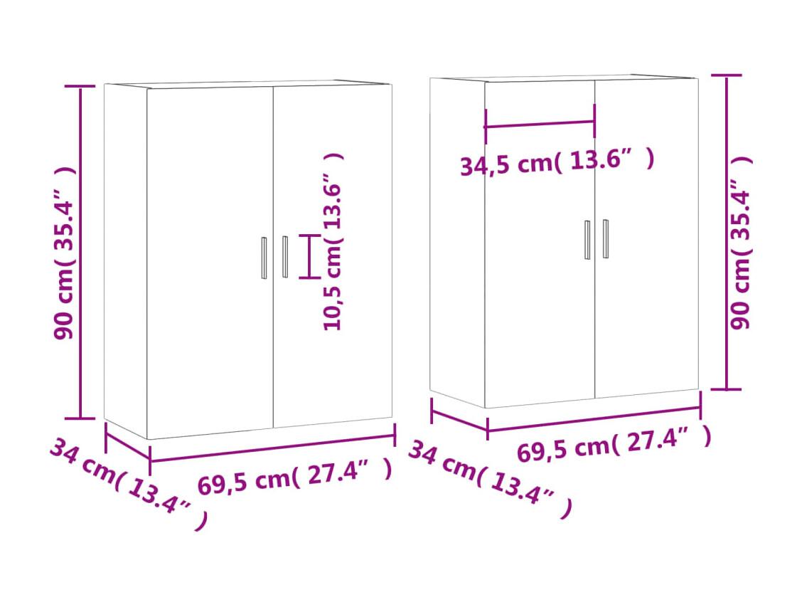 Armoires murales 2 pcs gris béton 69,5x34x90 cm