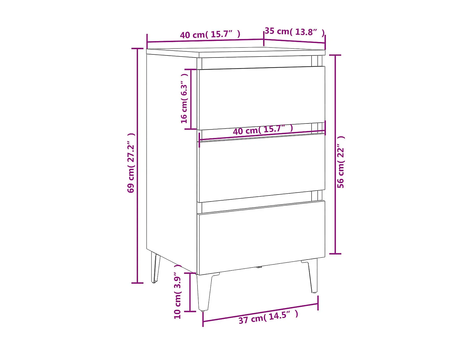 Artan Table de chevet avec pieds en métal noir 40x35x69 cm