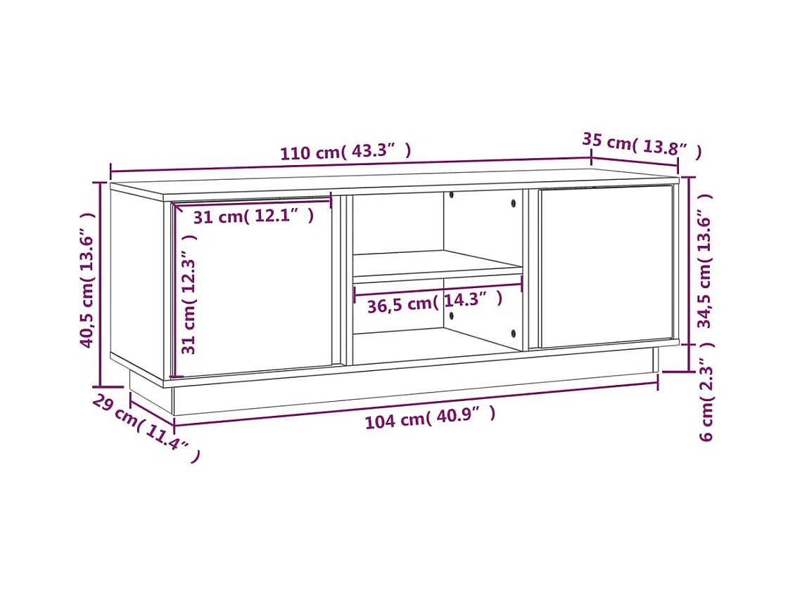 Arwen Meuble TV Marron miel 110x35x40,5 cm Bois de pin massif