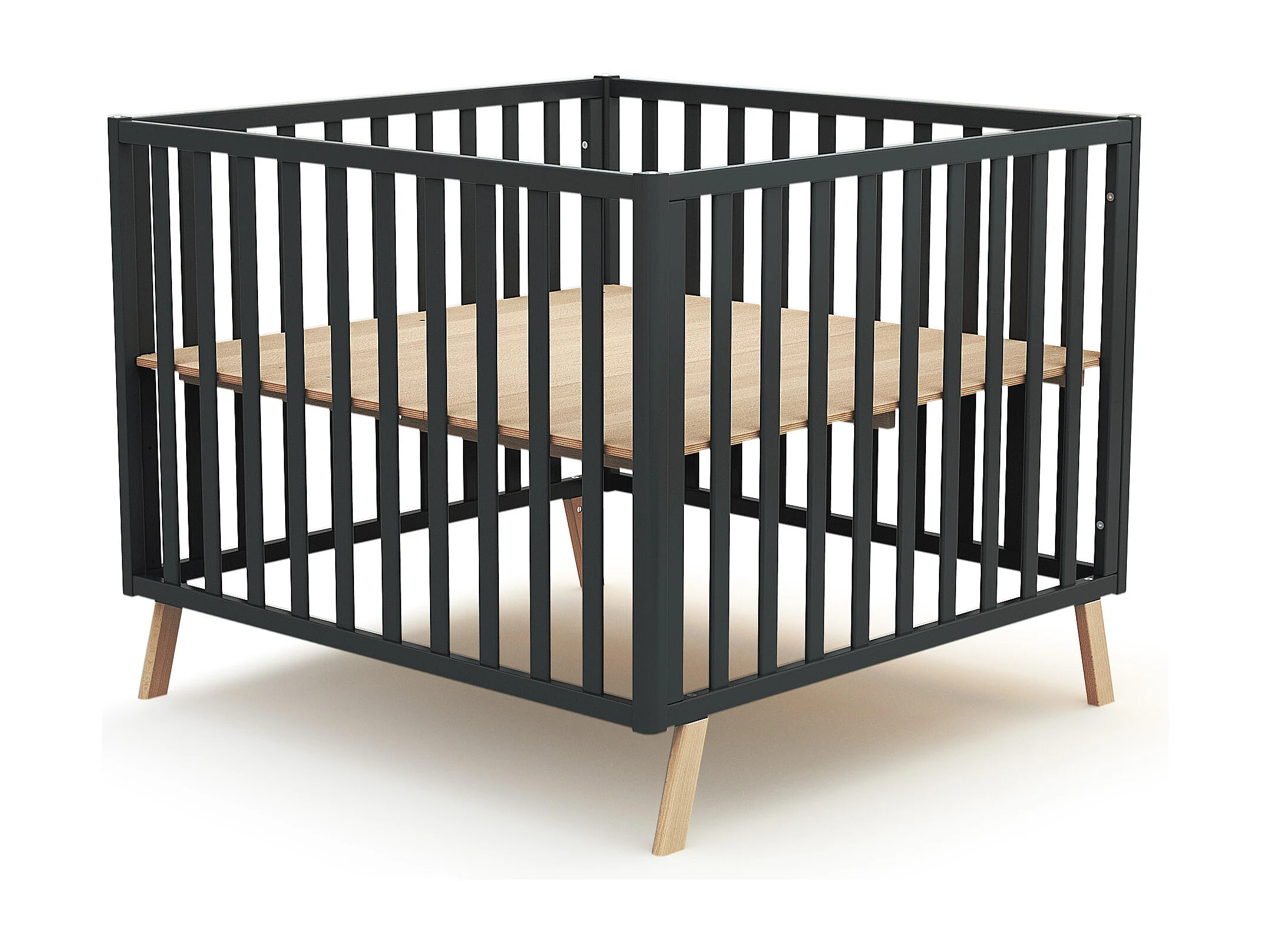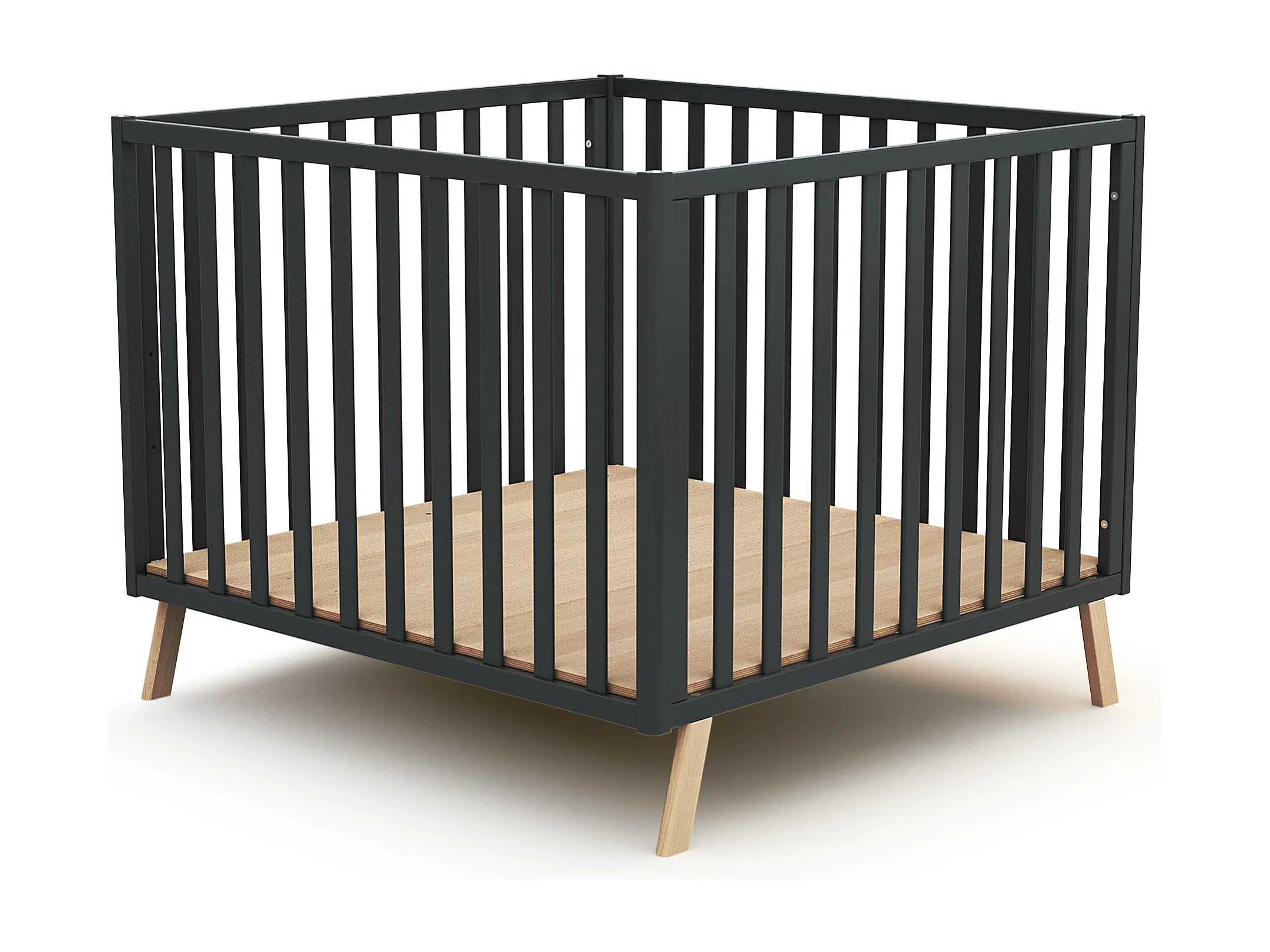 Parc bébé évolutif en bois CONFORT Gris Graphite 100 x 100 cm