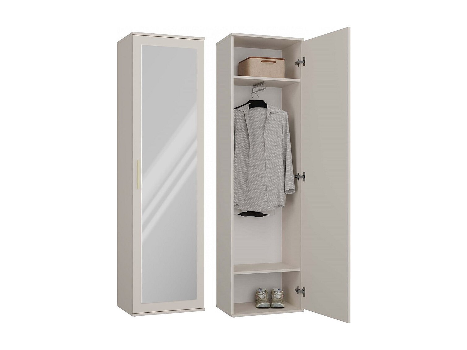 ATARA - Armoire d’entrée avec grand miroir - 180x50x35 cm - 2 étagères + penderie - Meuble d’entrée - Beige