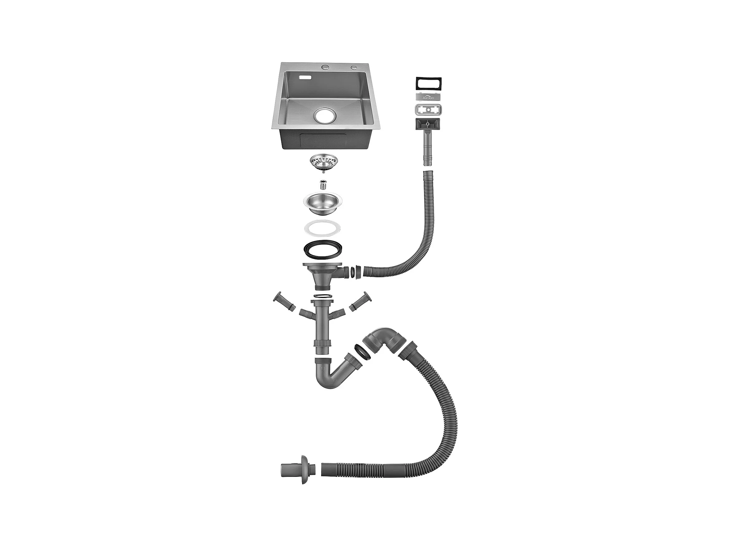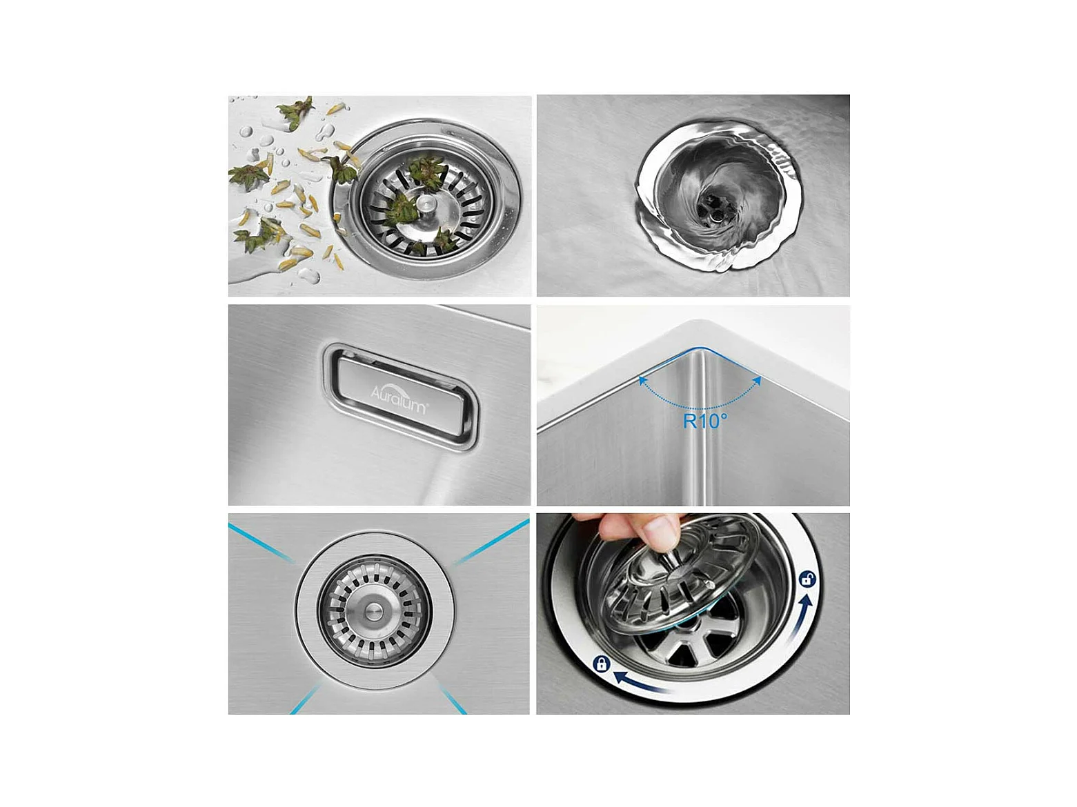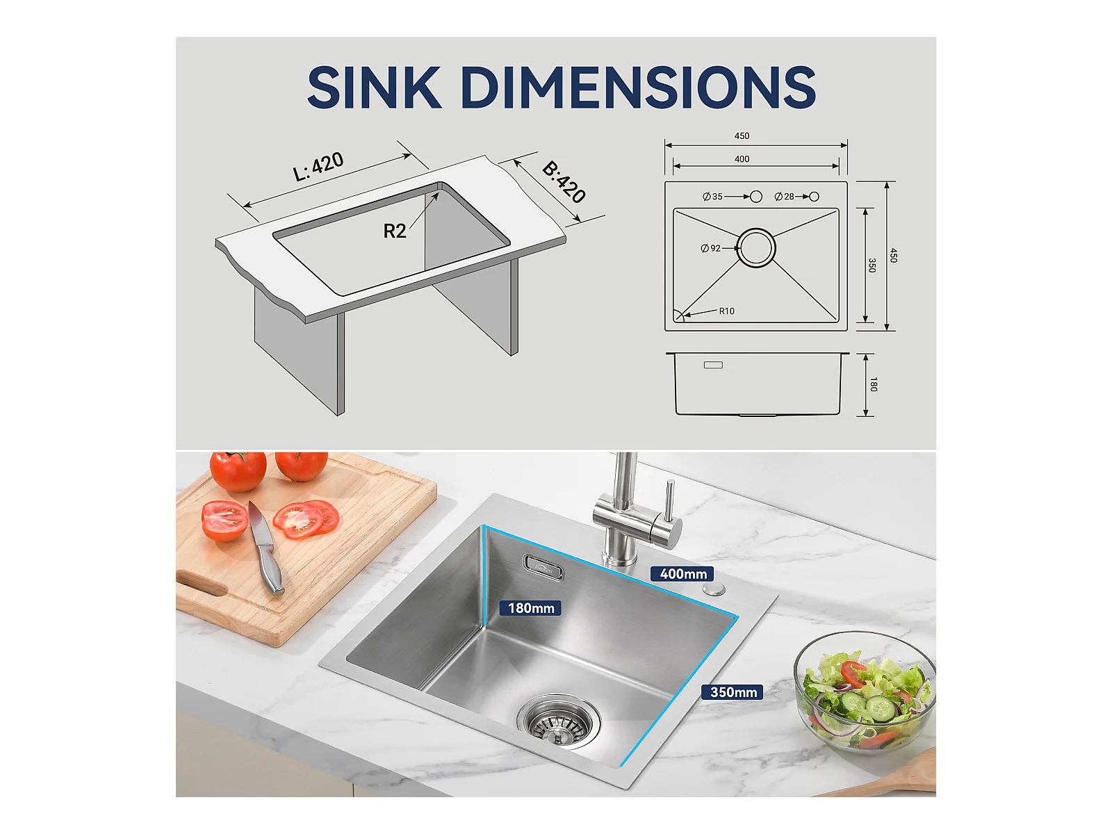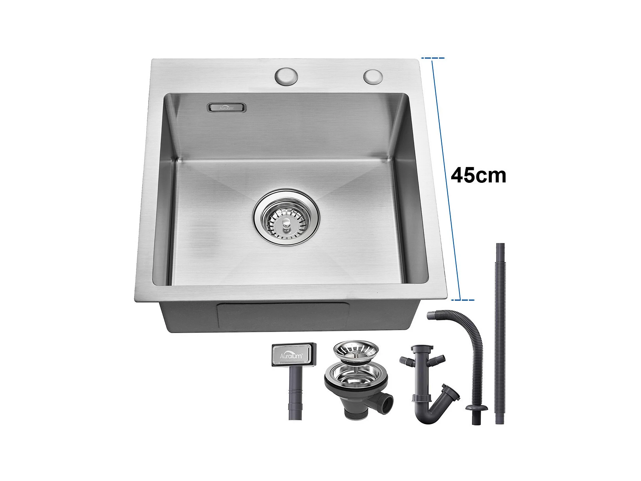 AURALUM MAX Evier Cuisine 1 Bac 45x45CM,Évier Inox 1 Cuve avec Siphon et Trop-Plein,Évier encastré et à Poser Évier avec Trou de Montage pour Robinet