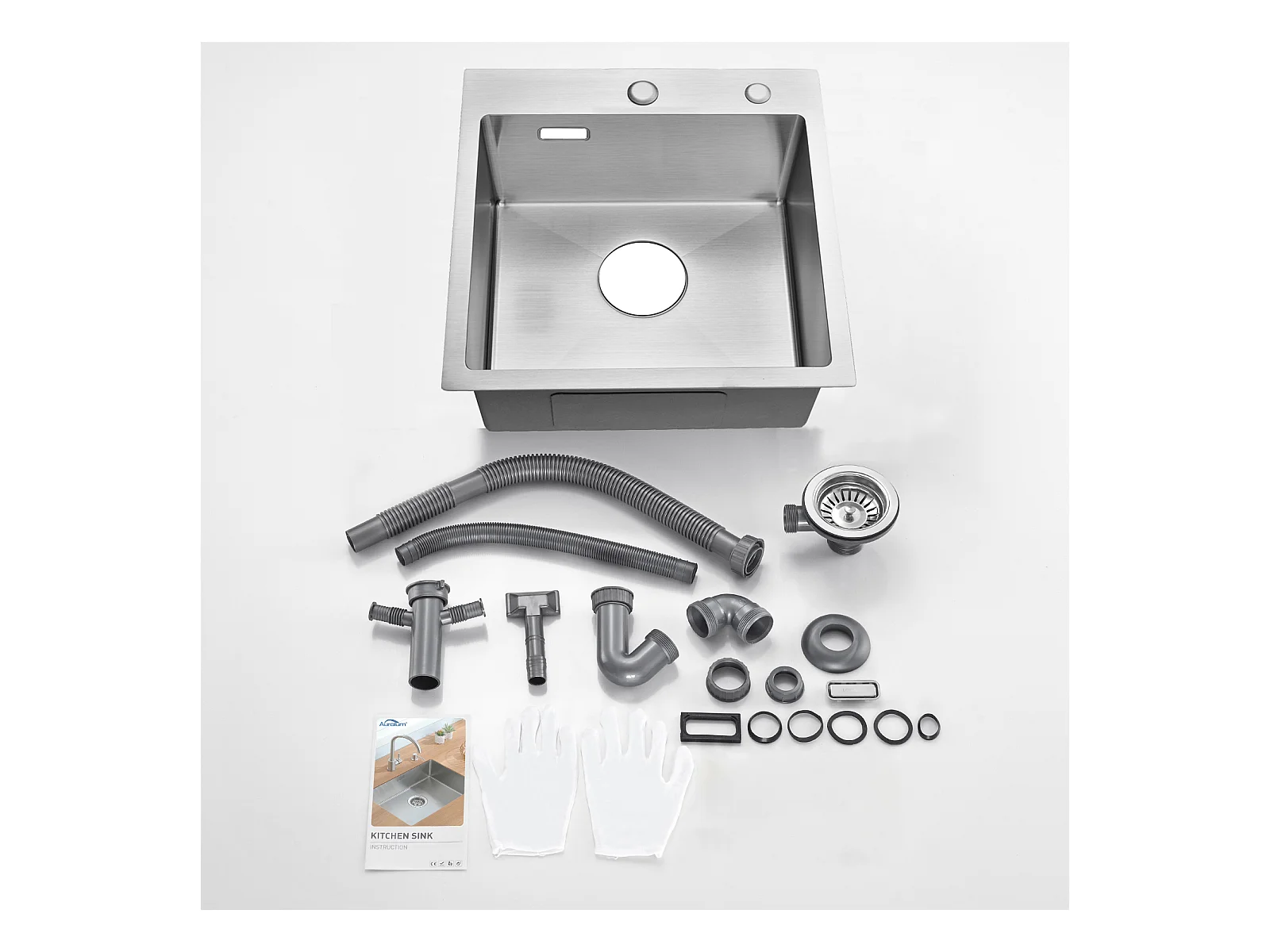 AuraLum Max Évier Cuisine 1 Bac en Acier Inoxydable 304 Brossé 45x45CM Évier encastré et à Poser Évier avec Trou de Montage pour Robinet,EU Modèle