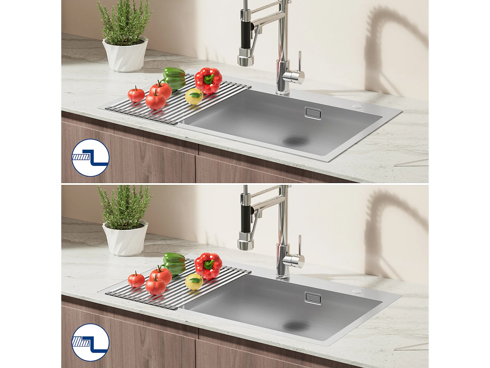 Auralum MAX Évier Cuisine 1 Cuve Inox Brossé75*45*19CM-Évier avec Égouttoir pliable+Elégant Mitigeur de Cuisine Auralum Chromé,Pivotant 360°