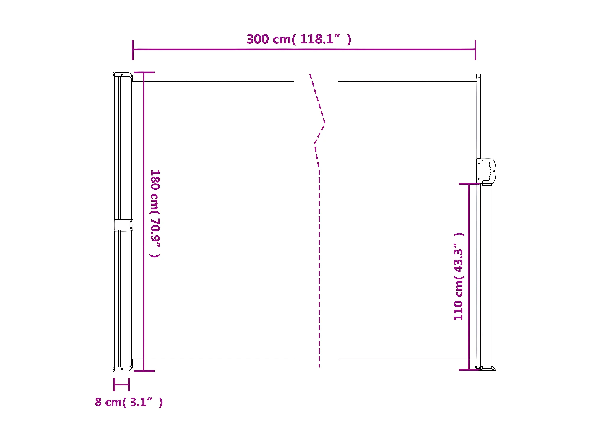 Auvent latéral rétractable noir 180x300 cm