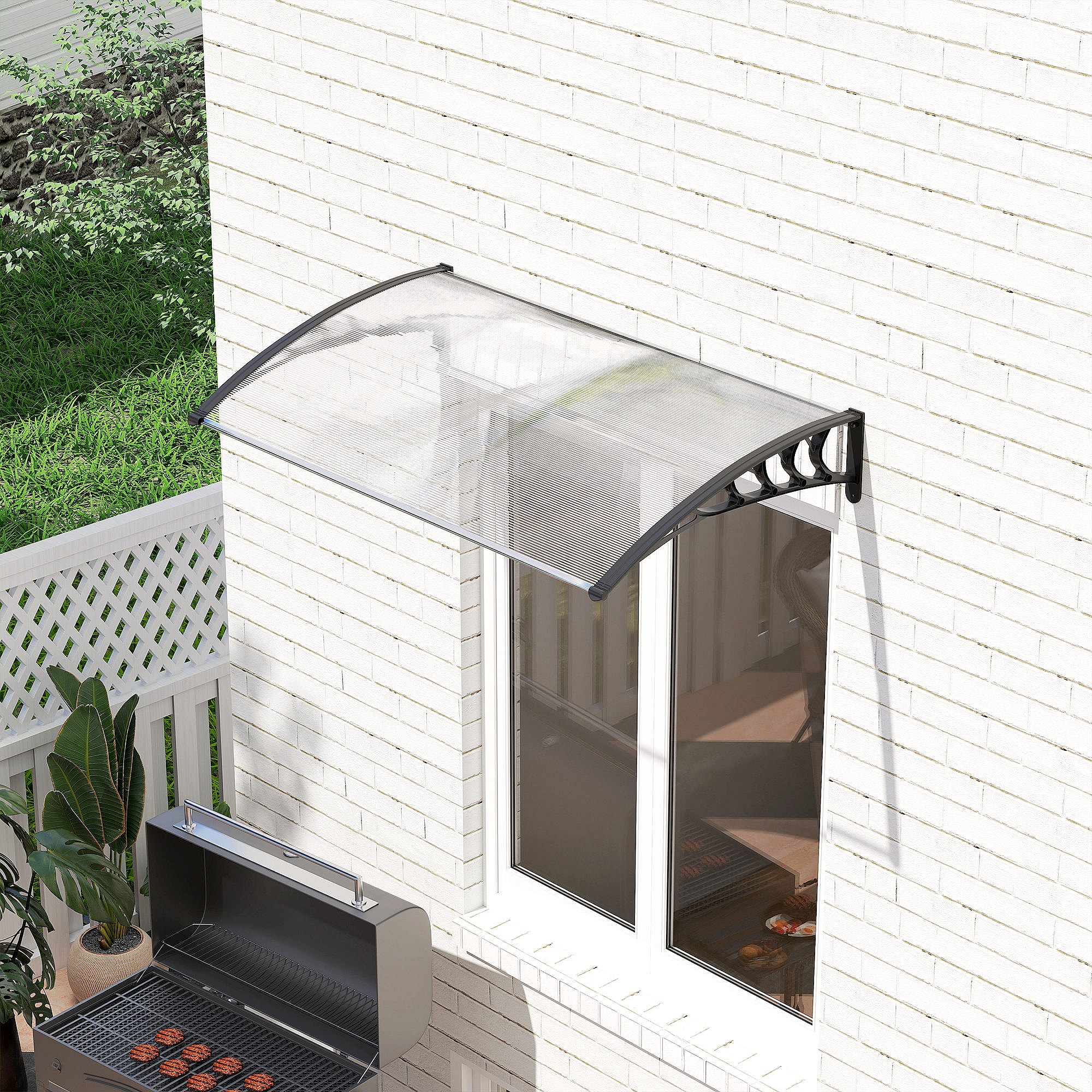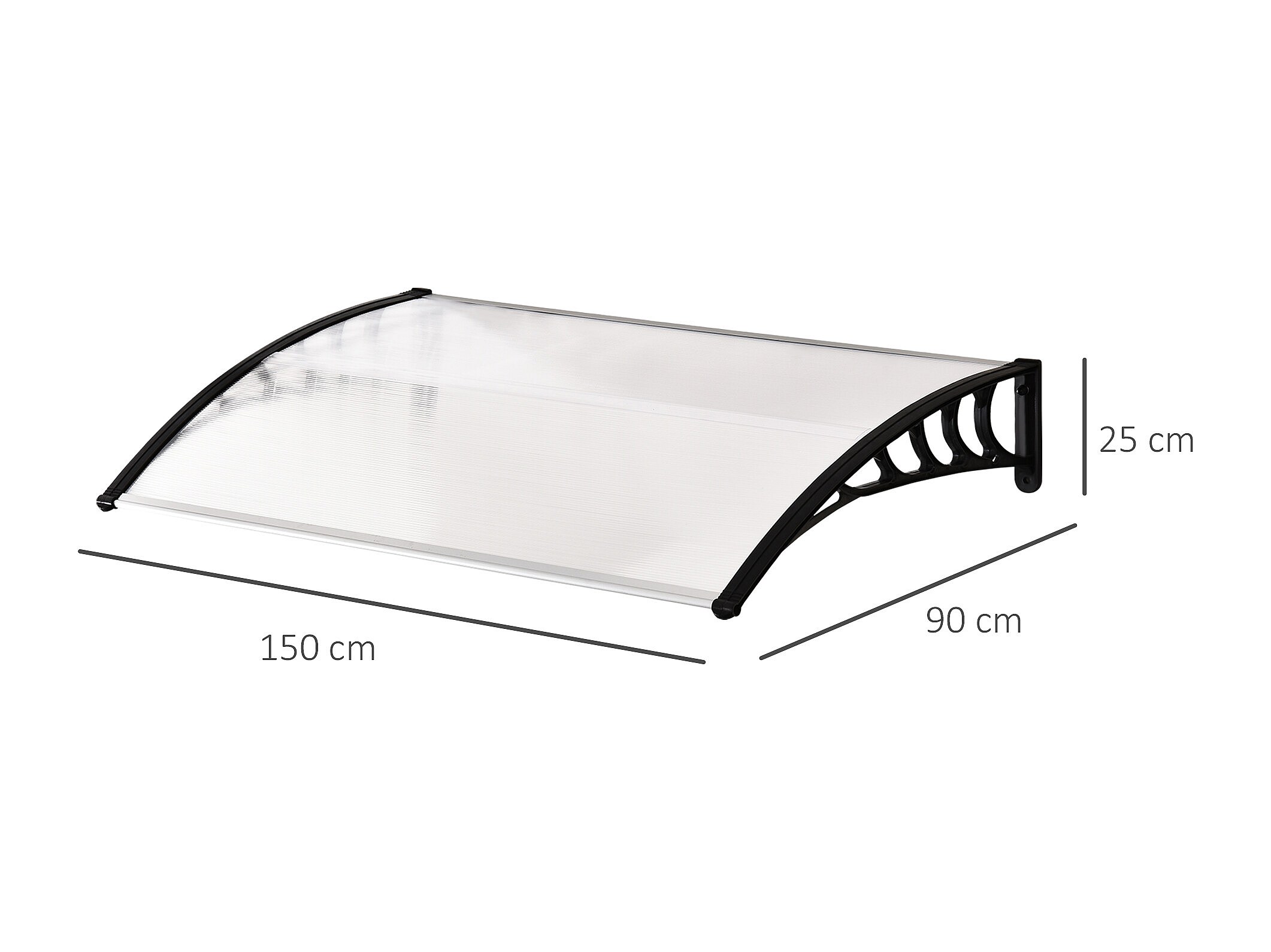 Auvent marquise de porte design voûté arrondi dim. 150L x 90l x 25H cm polycarbonate PP noir