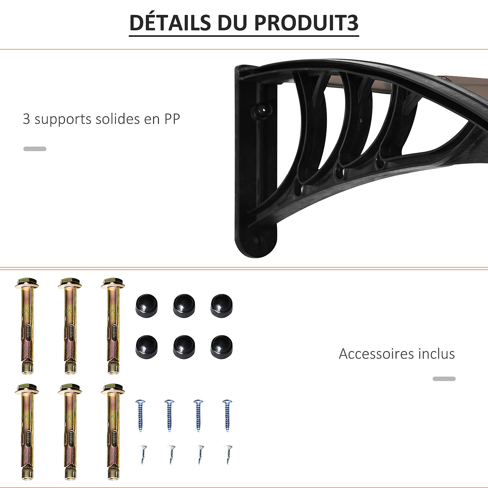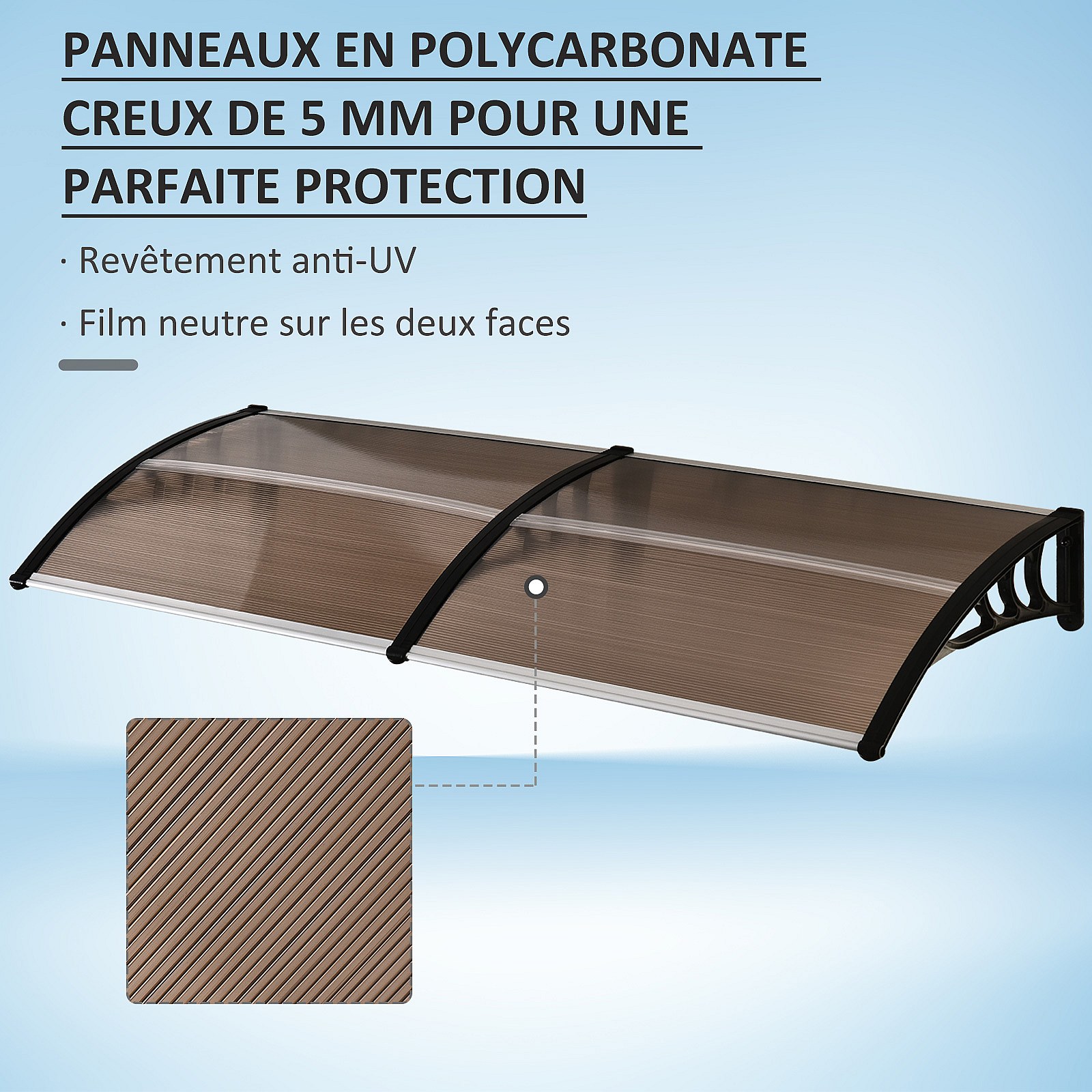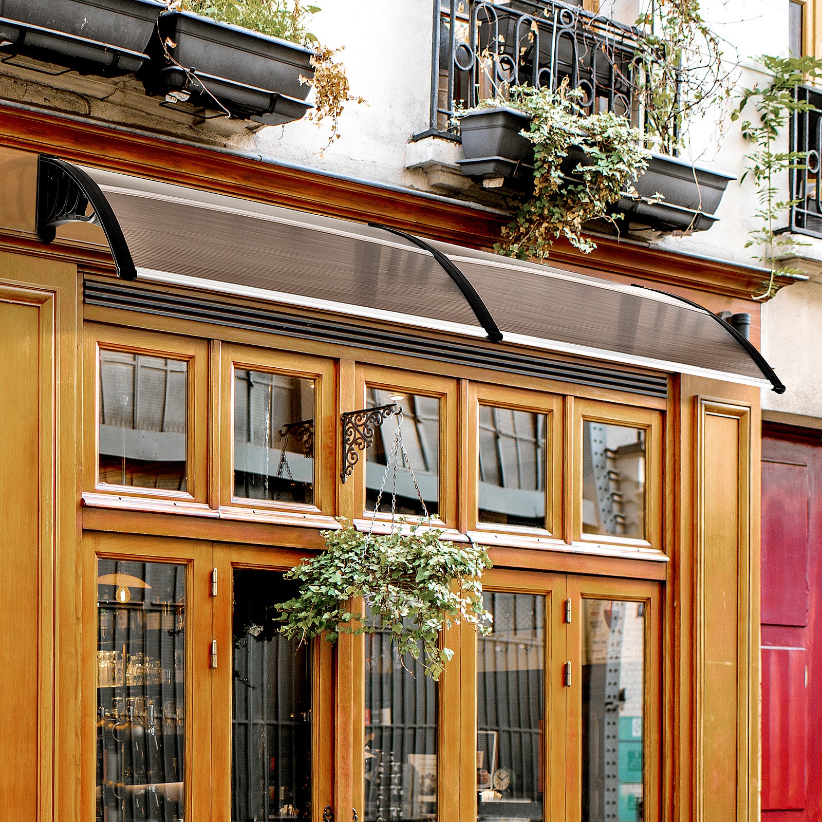 Auvent marquise de porte design voûté arrondi dim. 195L x 80l x 23H cm polycarbonate fumé brun plastique noir