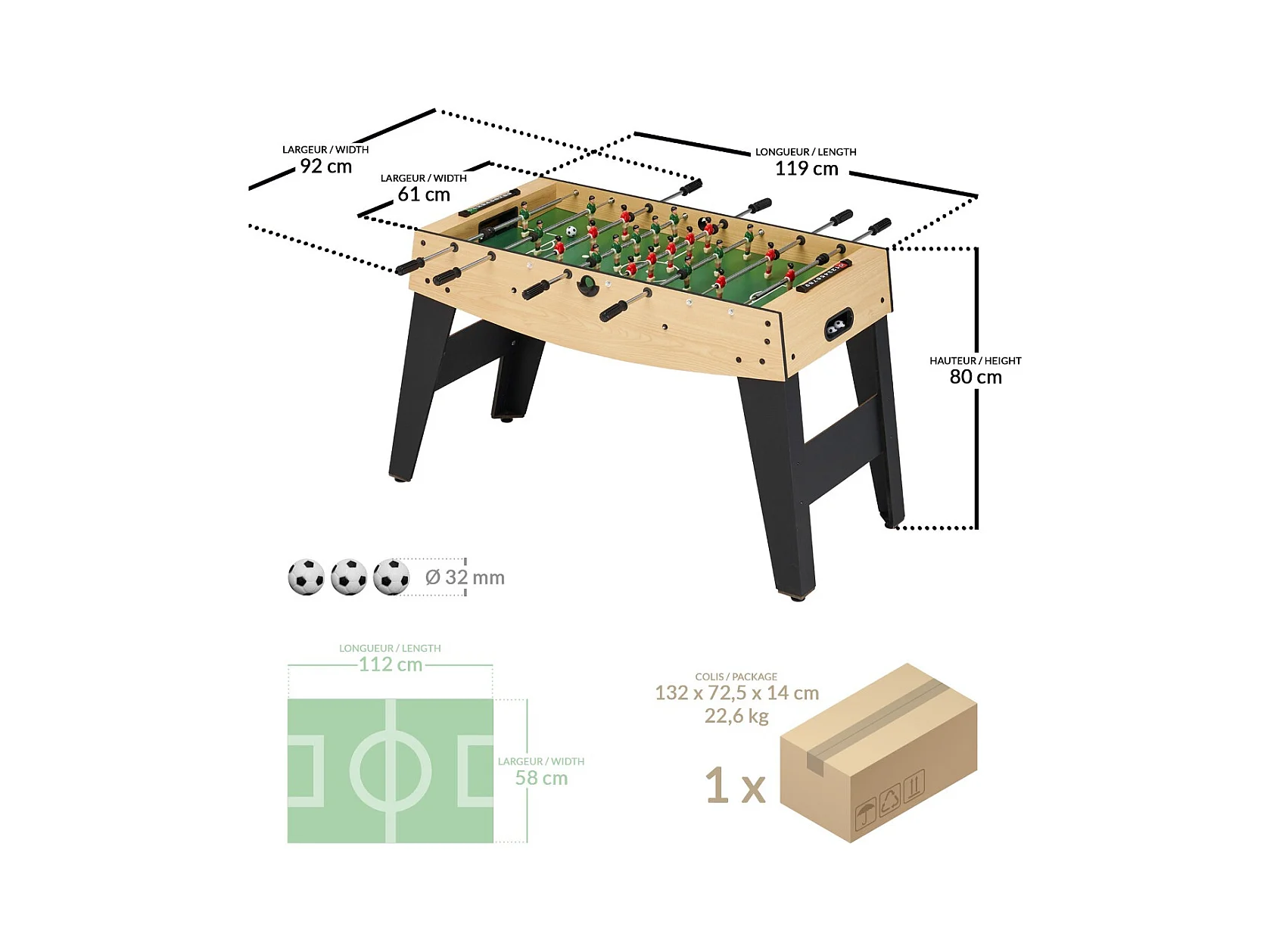 Babyfoot enfant - 22 joueurs - 3 balles incluses - 2 à 4 joueurs
