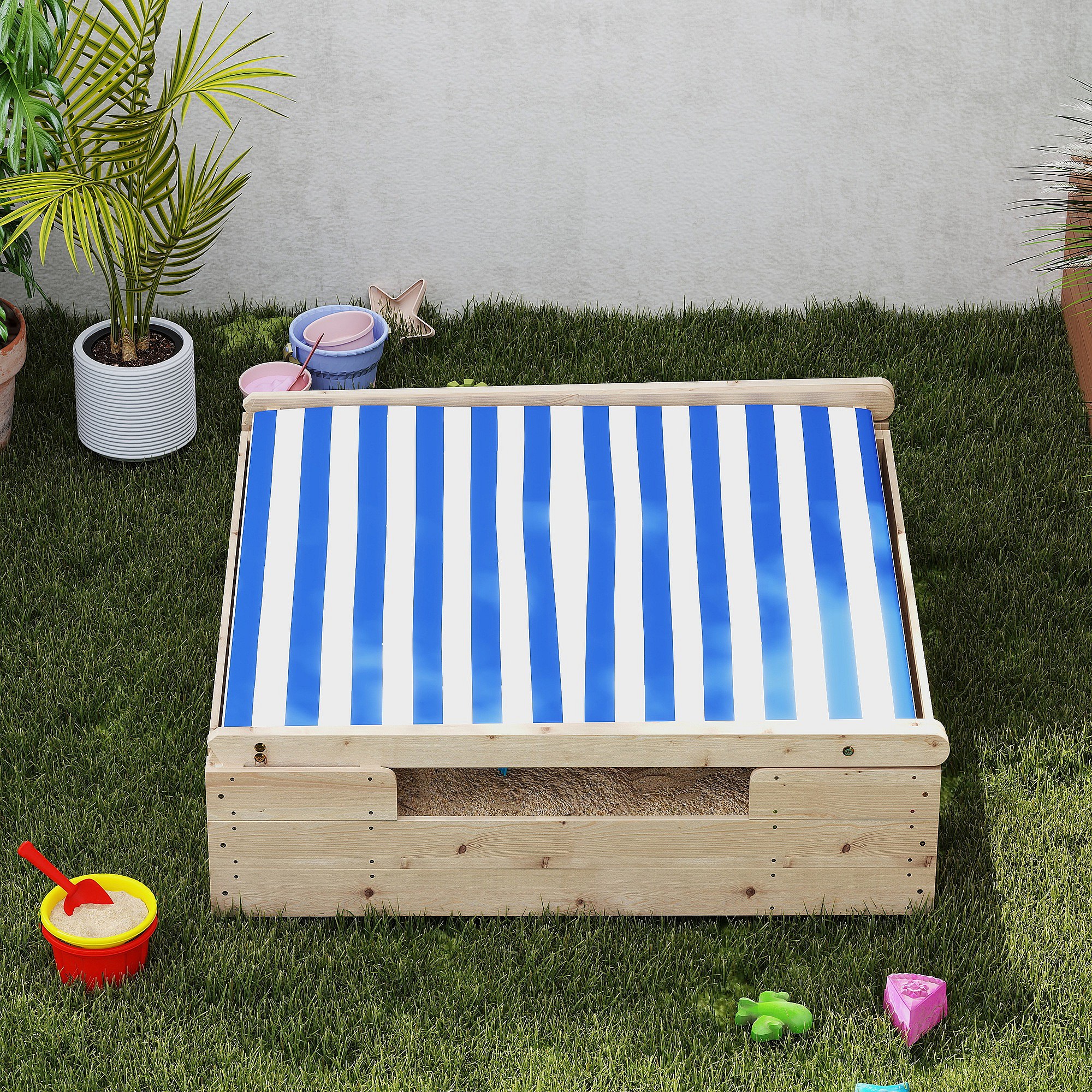 Bac à sable carré en bois pour enfant dim. 106L x 106l cm avec bancs et couvercle - auvent réglable