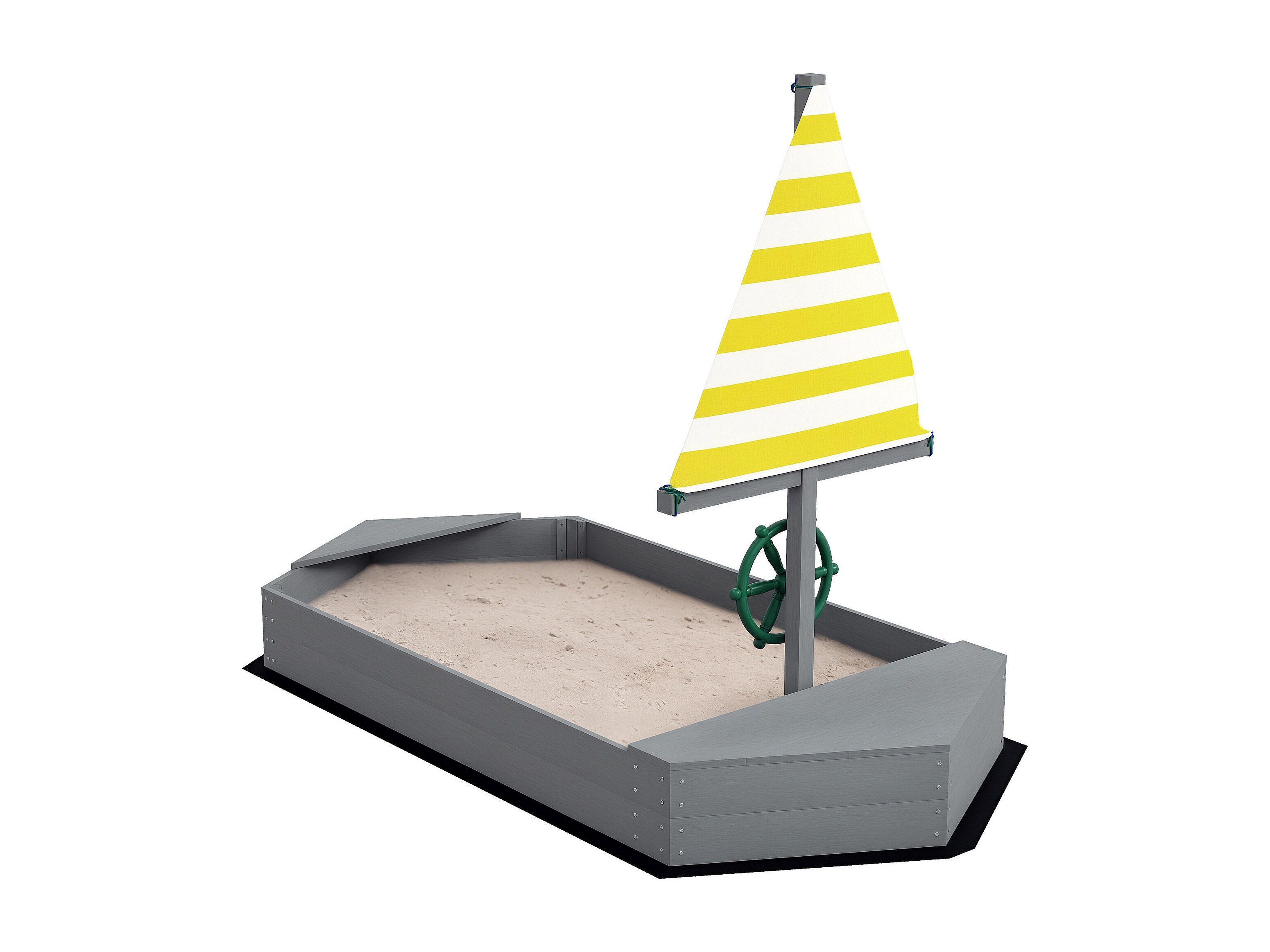 Bac à sable enfant design bateau - dim. 190L x 90l x 138H cm - voile, gouvernail - bois gris