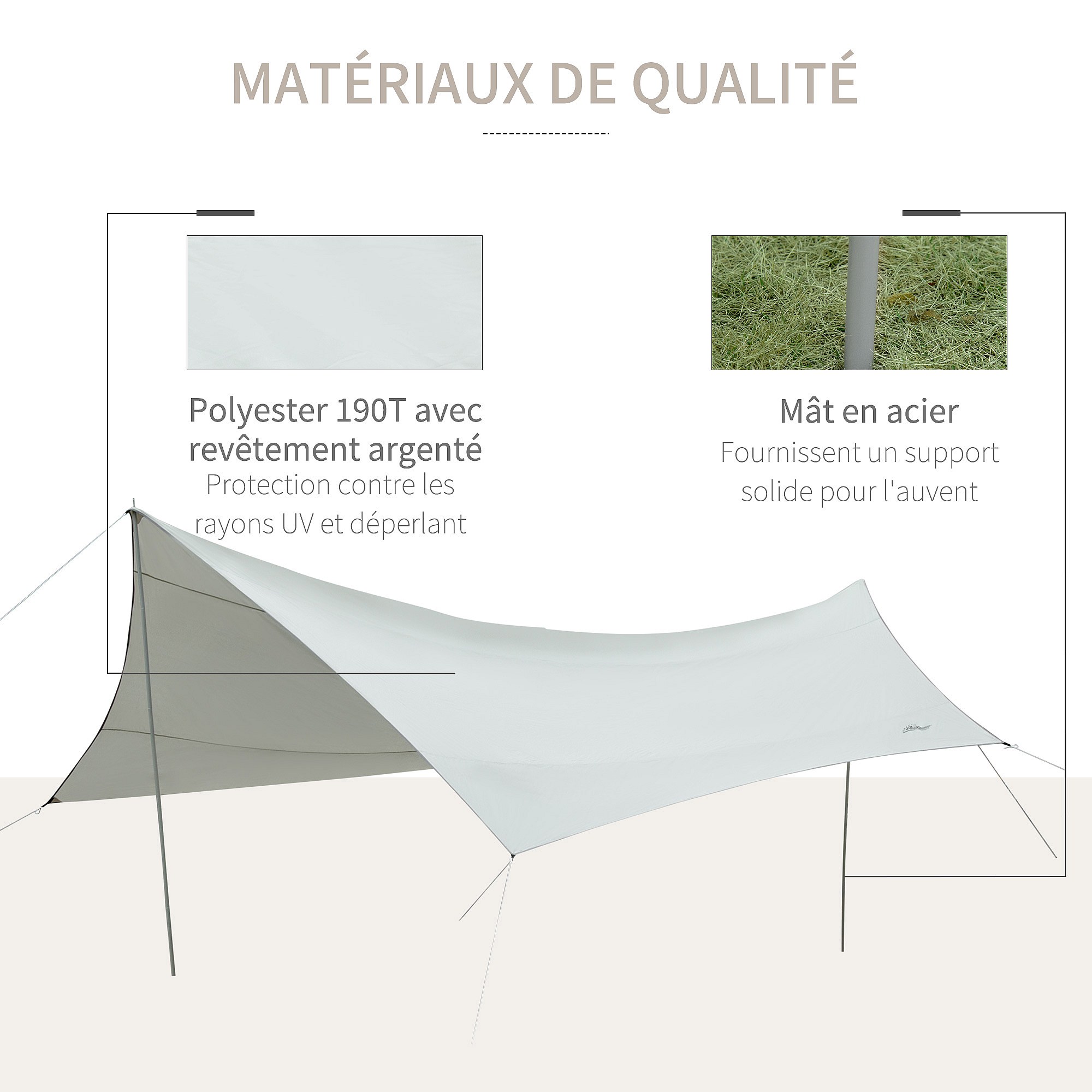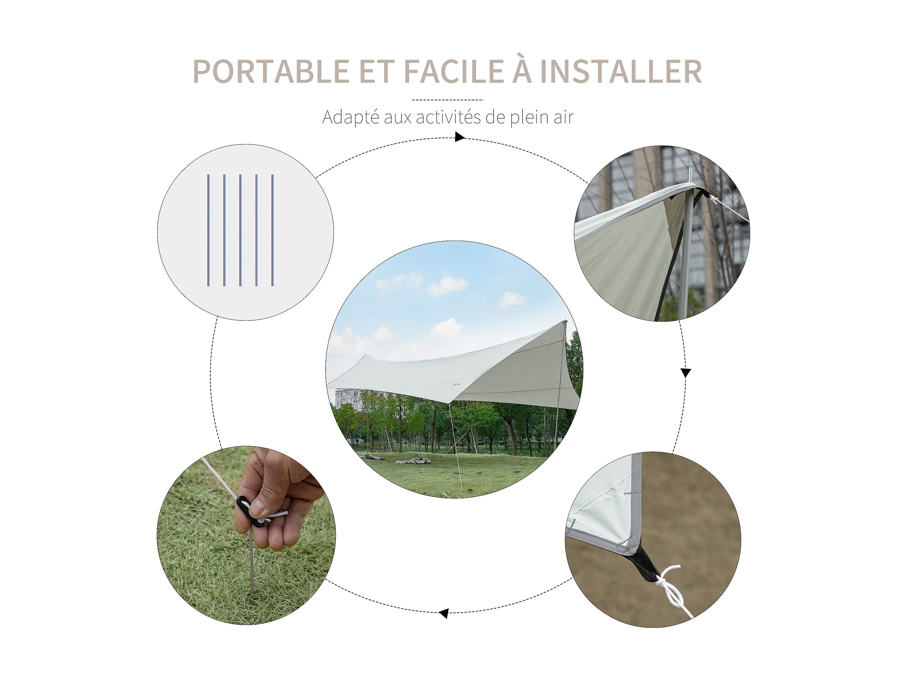Bâche anti-pluie voile d'ombrage toile de camping 5,6L x 5,5l m polyester haute densité 190T imperméable gris